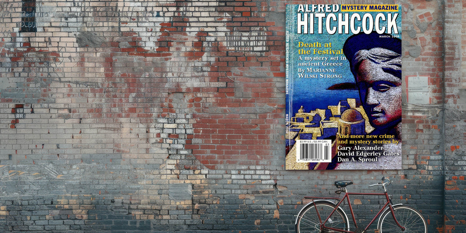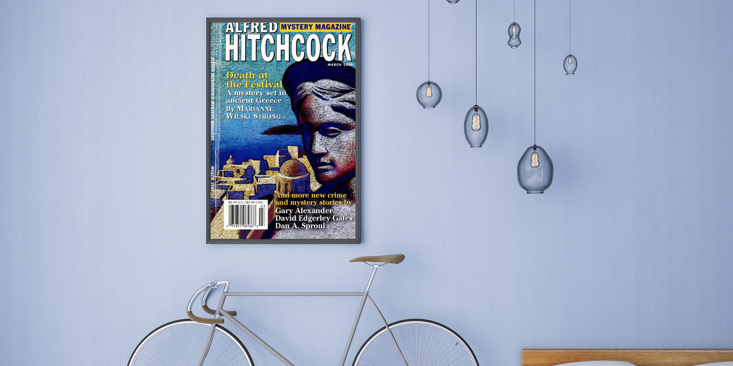 - Reproduction of the iconic Alfred Hitchcock Mystery Magazine cover from March 2004