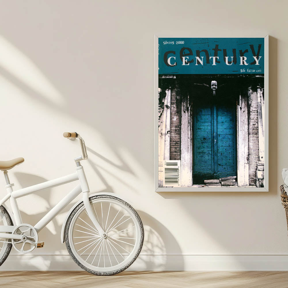 Step back in time with this striking Vintage Magazine Cover Art from the "Century" collection. Featuring a bold, historical door framed by hauntingly beautiful architectural elements, this piece combines timeless imagery with a touch of modern abstraction. The stark contrast of deep blues and grays creates a visual contrast that brings out the soul of this retro magazine cover print, ideal for adding sophistication to any room. Whether you’re decorating a contemporary living room or enhancing an office space, this classic magazine cover artwork serves as an eye-catching focal point.