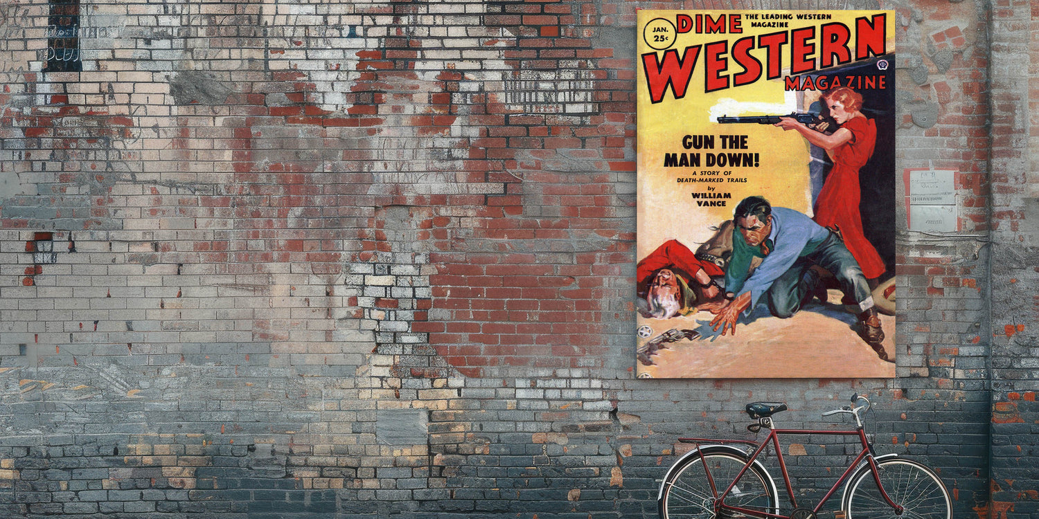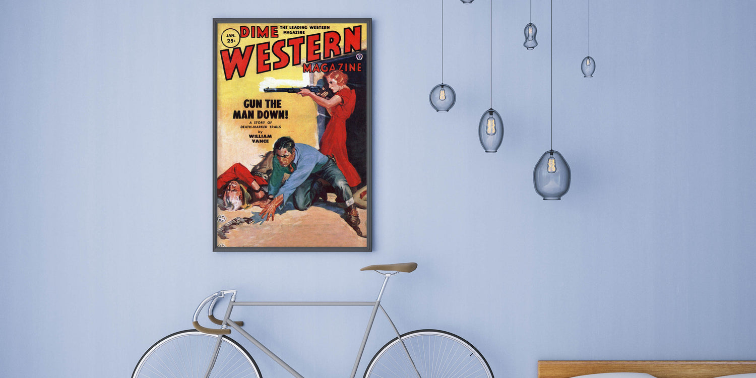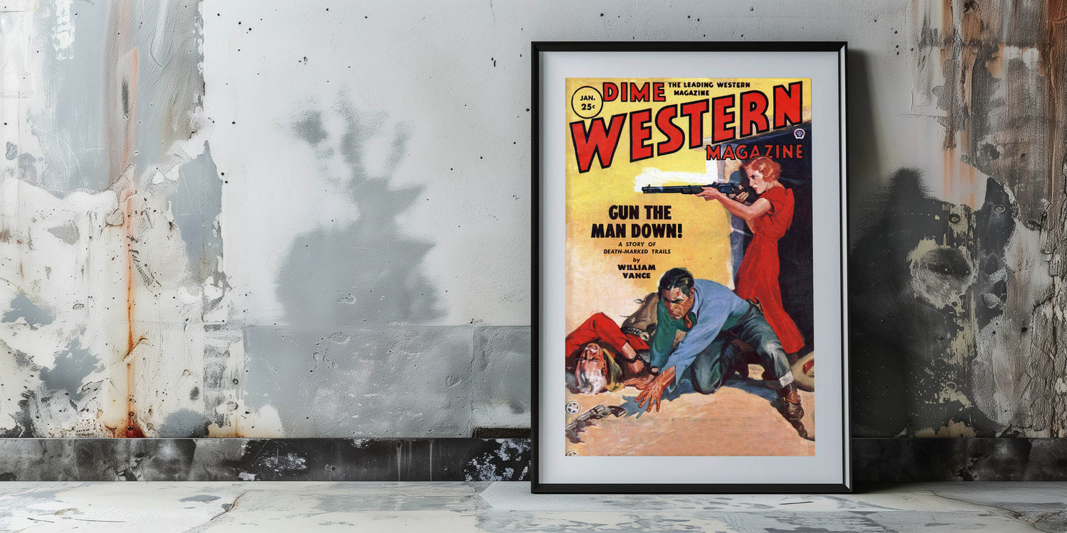 • High-quality reproduction of the iconic Dime Western Magazine cover