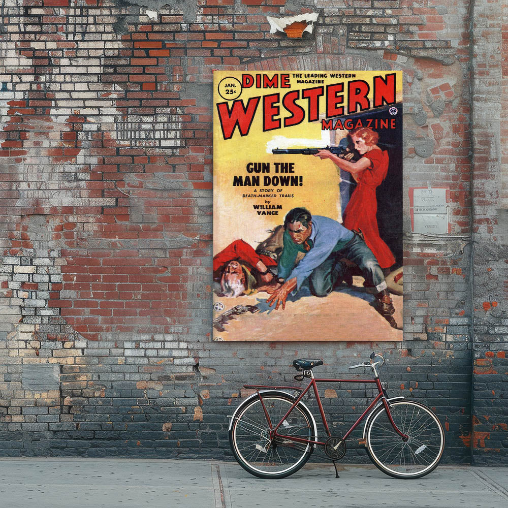 Add this iconic piece of vintage magazine cover wall art to your collection and immerse yourself in the thrilling world of the Old West.