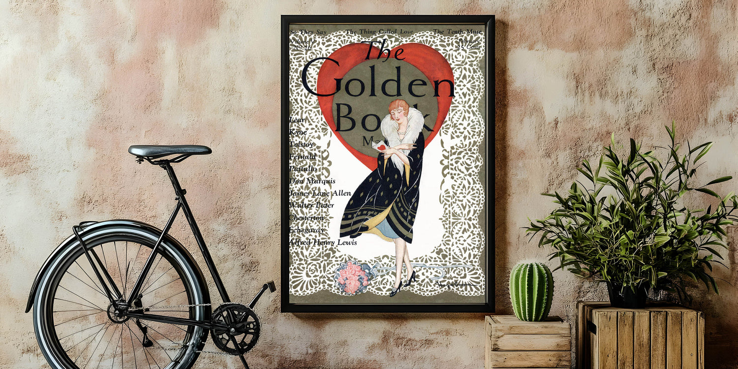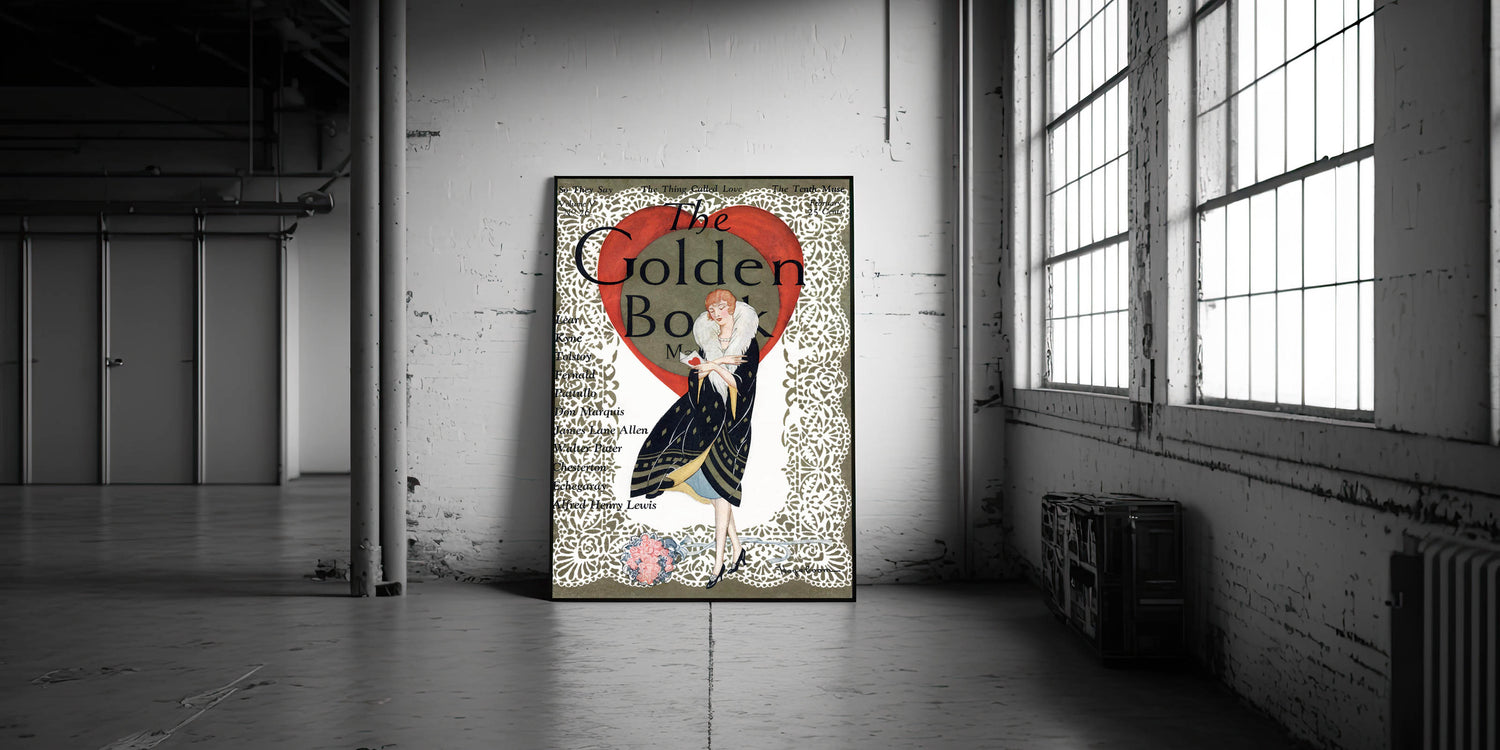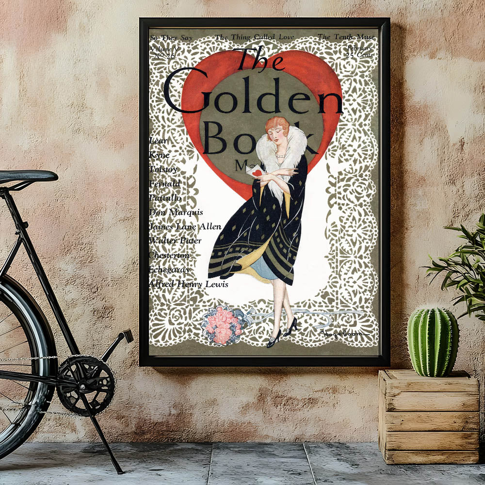 - Iconic vintage design: A beautiful reproduction of The Golden Book magazine cover from 1926.