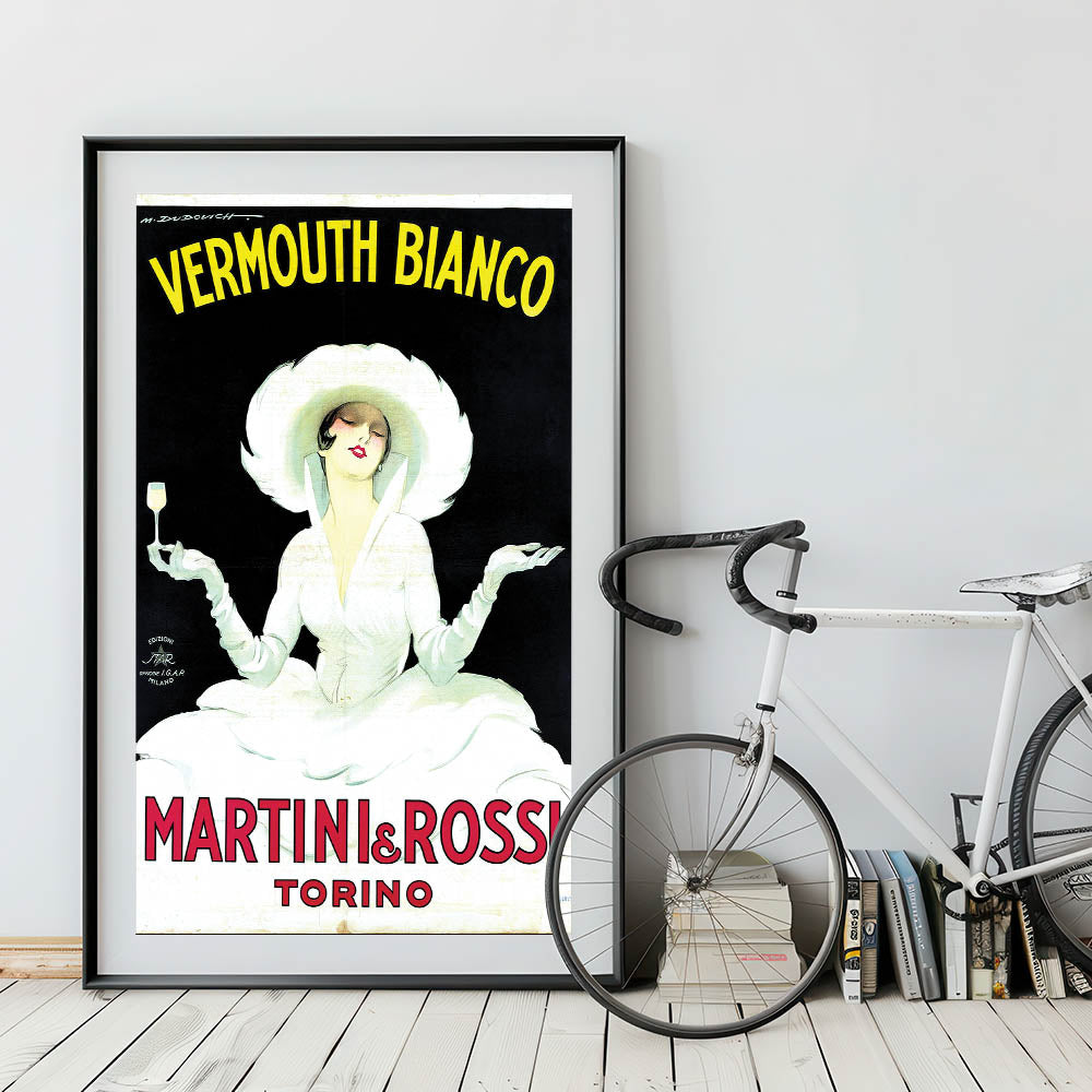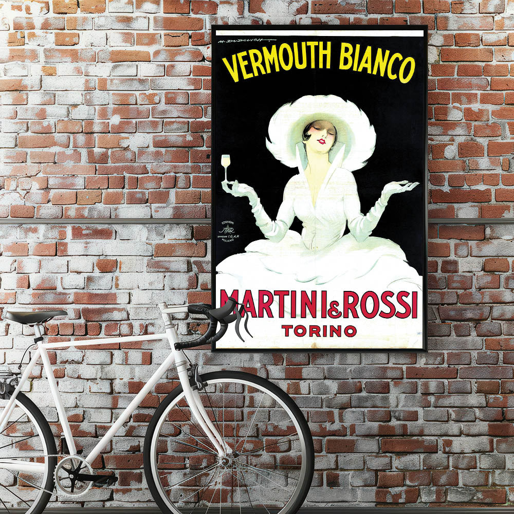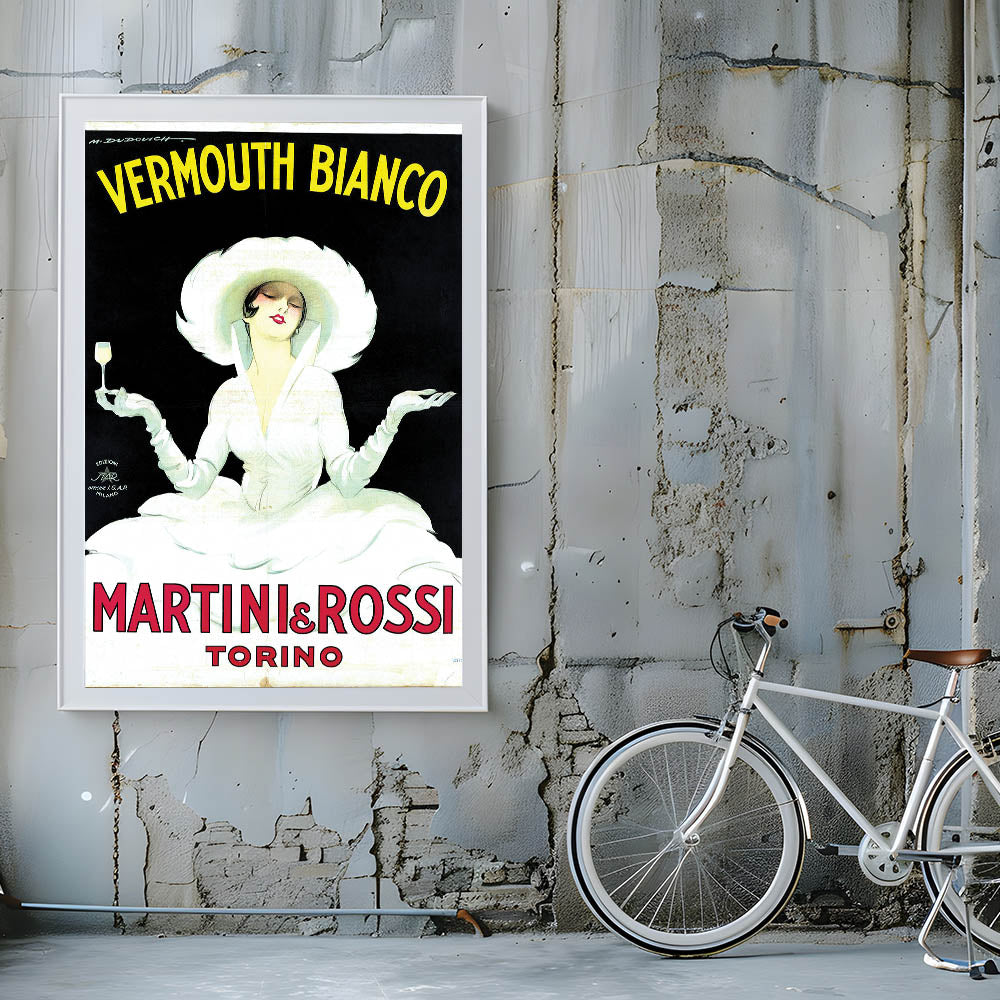 - A striking vintage-inspired wall art showcasing the elegance of Martini Vermouth Bianco.