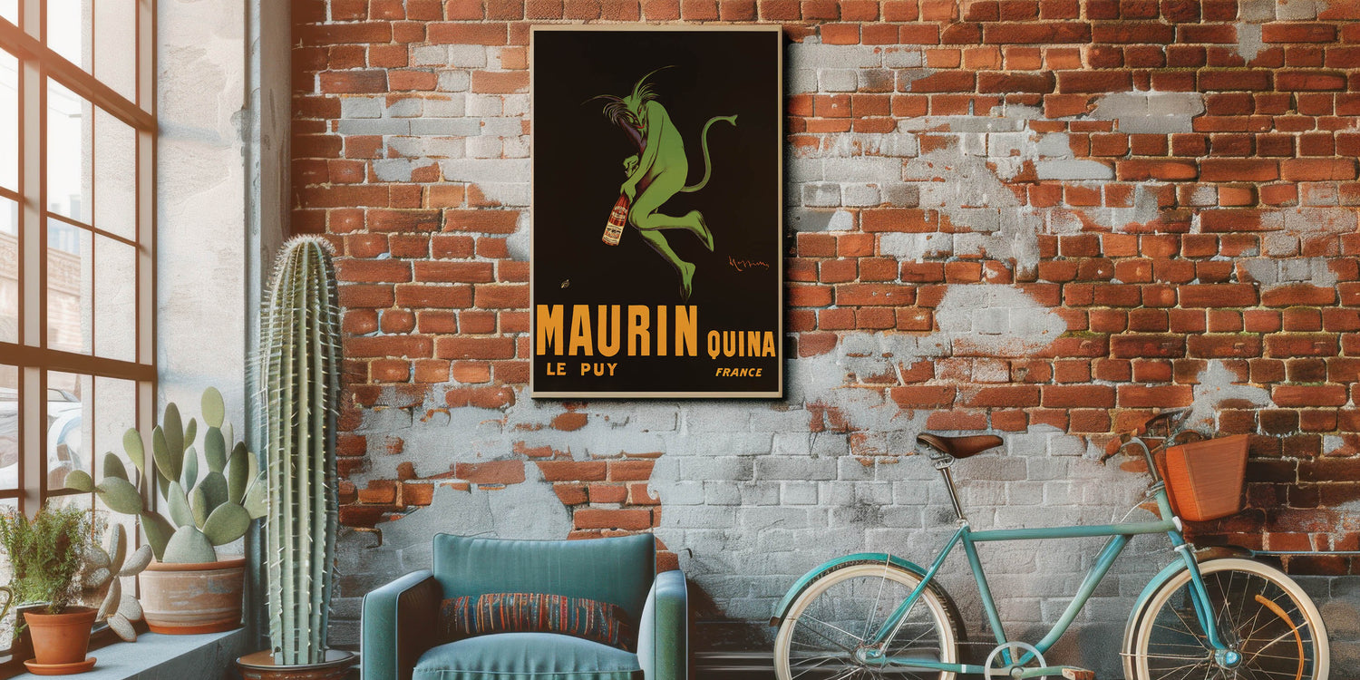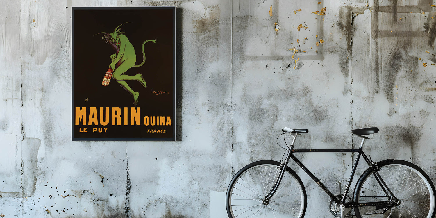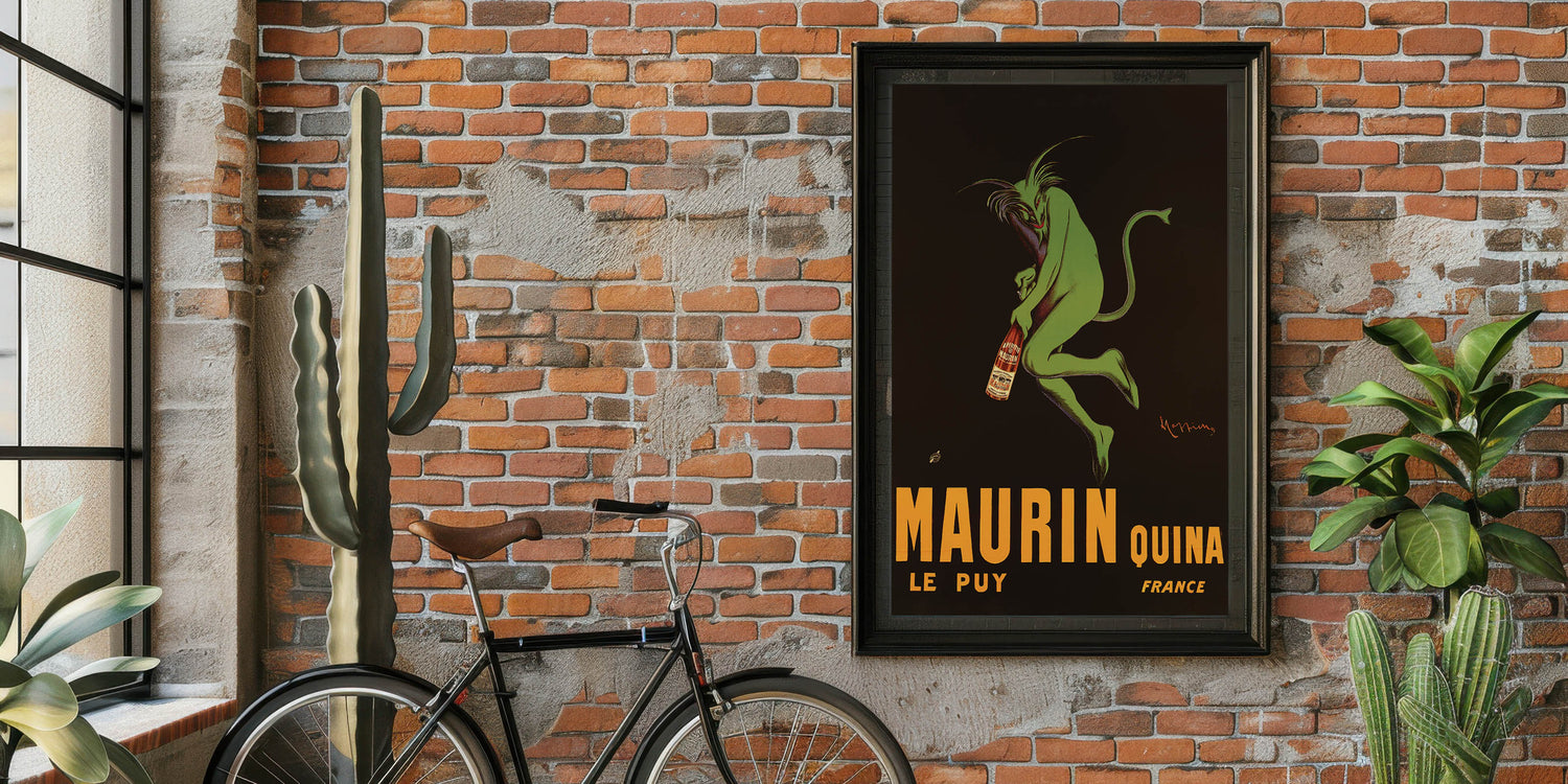 - A striking vintage-inspired wall art that features the iconic Maurin Quina liqueur brand.
