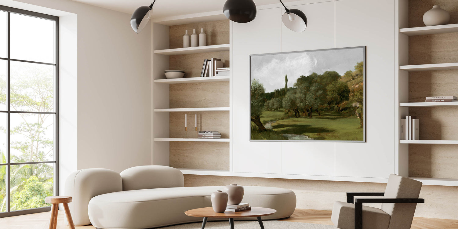 This vintage-inspired landscape painting brings the natural beauty of olive trees and the countryside into your home, evoking calm and tranquility while adding a classic, rustic charm to your decor.