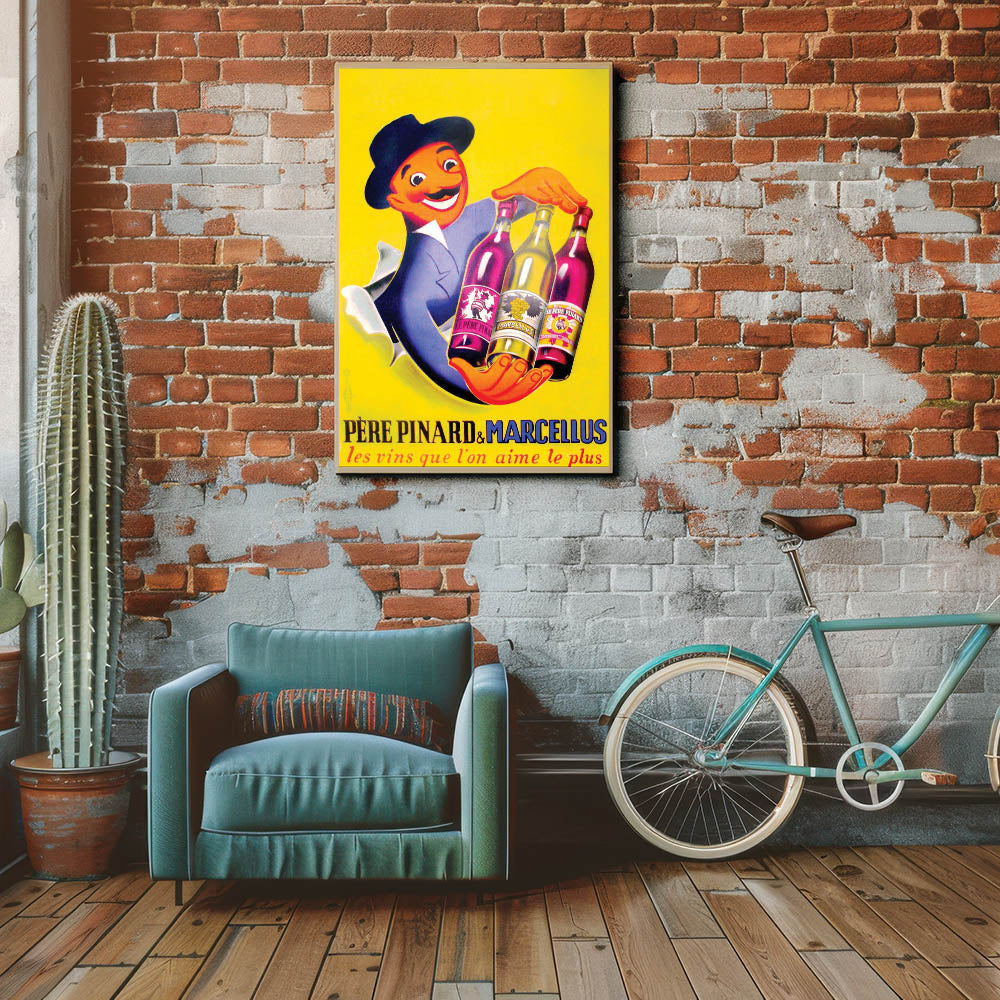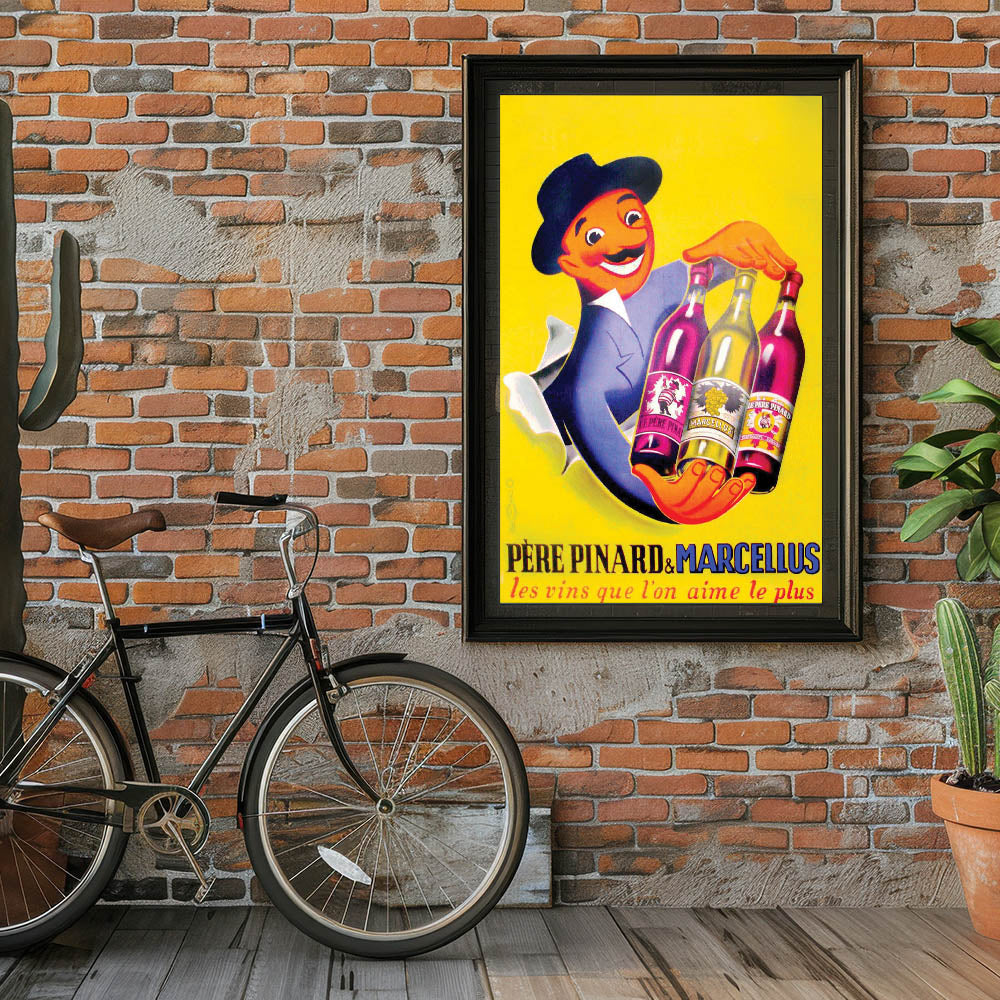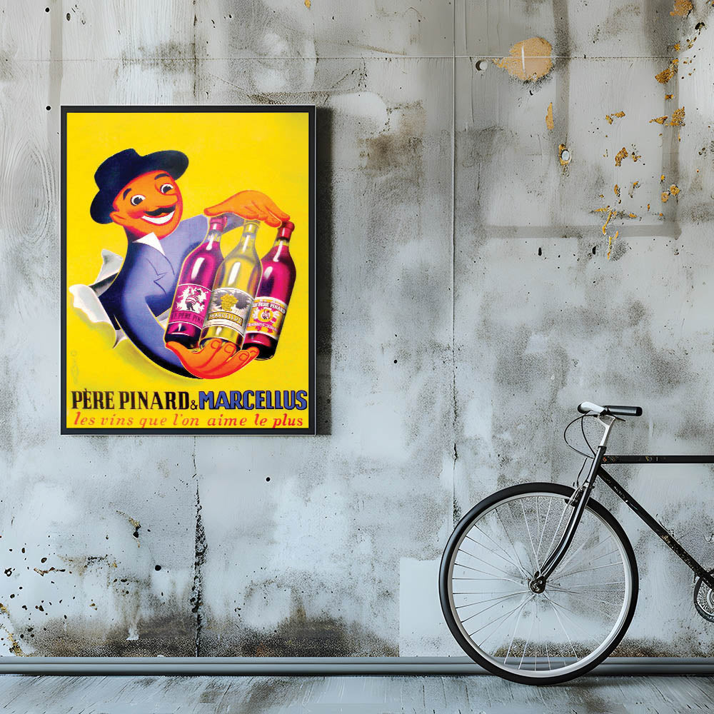 Vintage Père Pinard & Marcellus Wine Poster – Retro Ad Wall Art