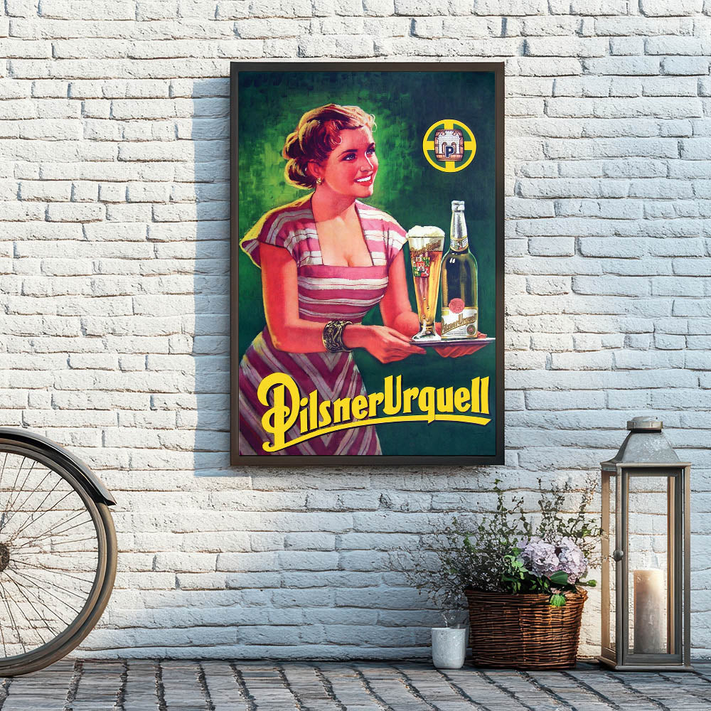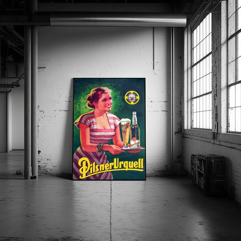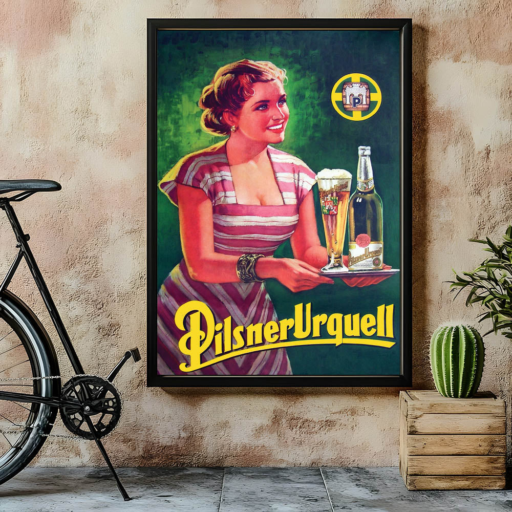 Vintage Pilsner Urquell Advertising Poster – Retro Beer Ad Wall Art