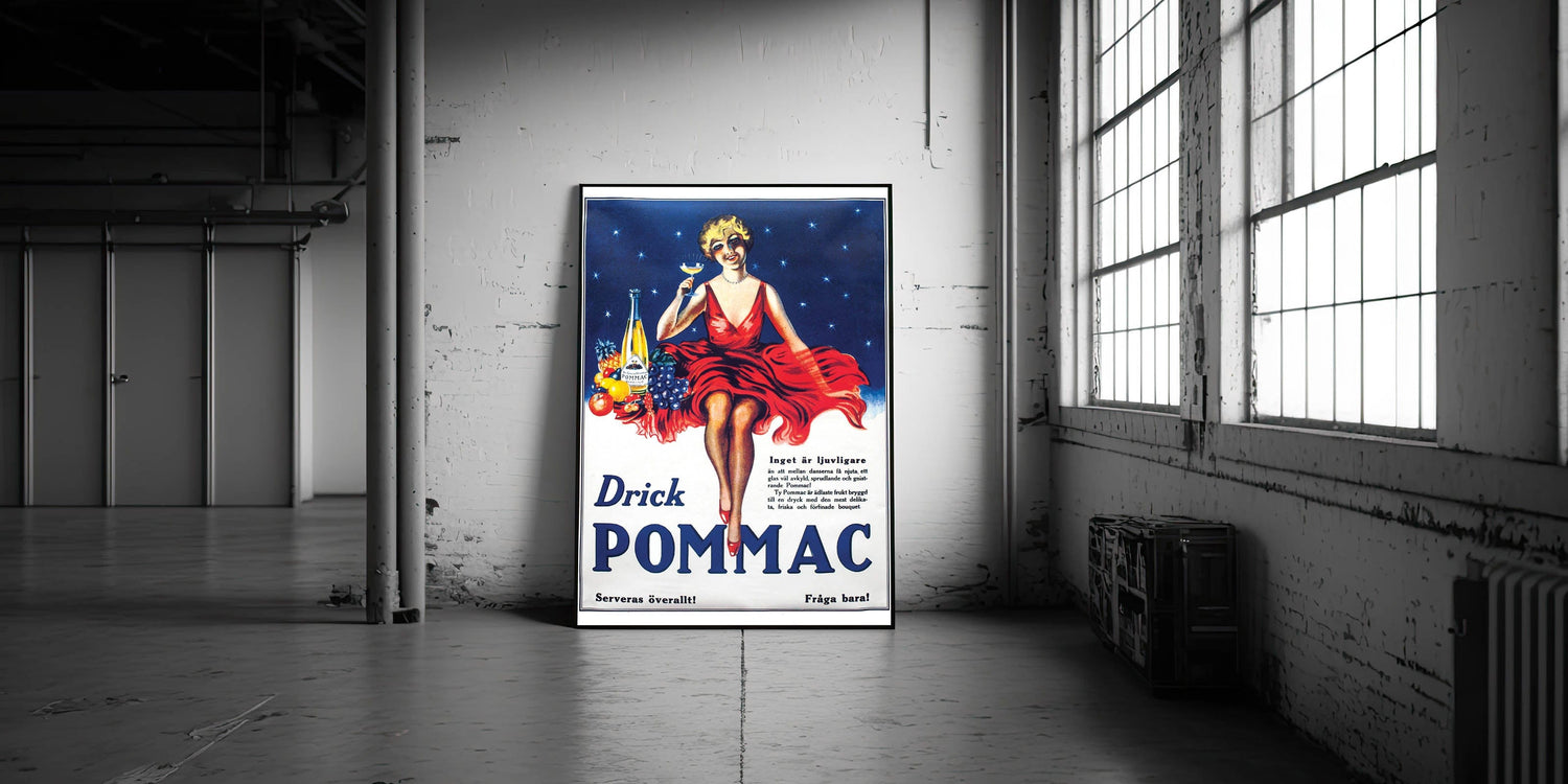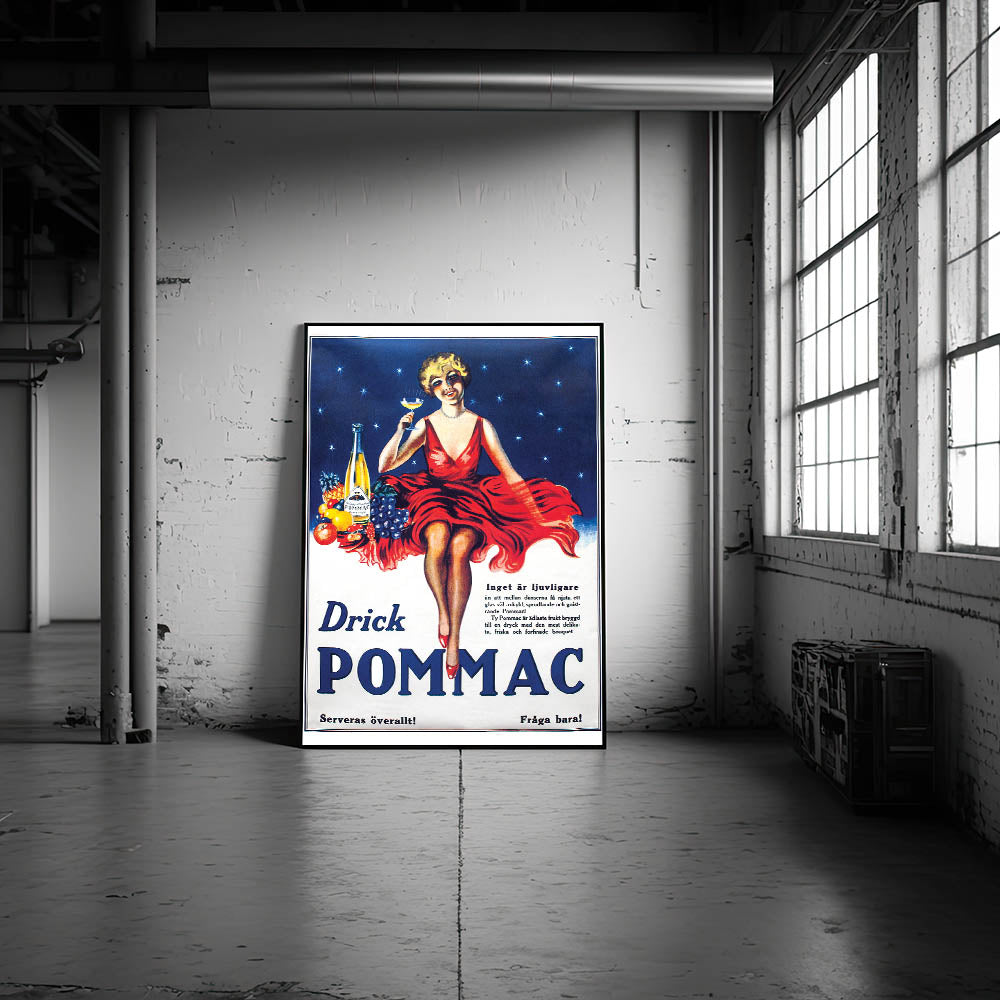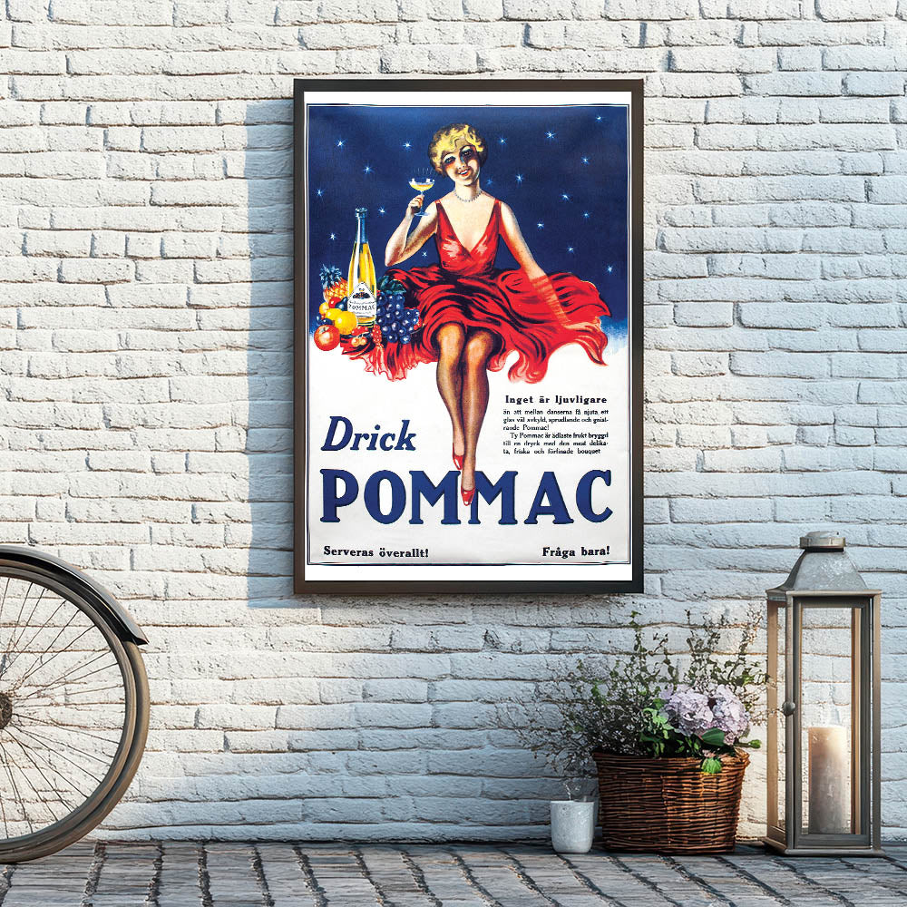 Vintage Pommac Poster – Retro Fruit Drink Ad Art with Dancer