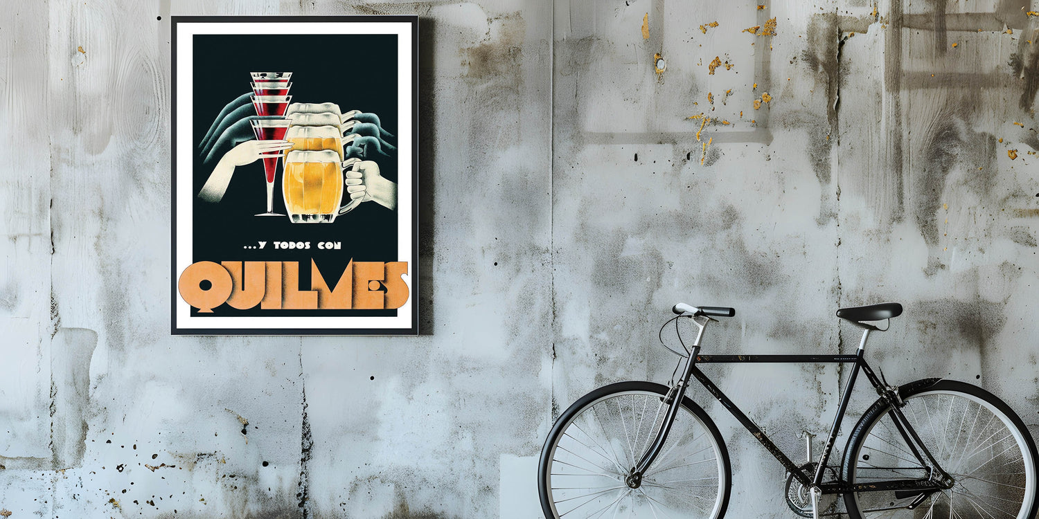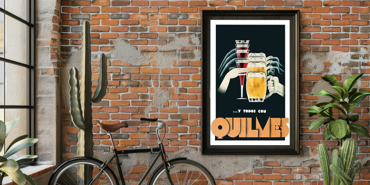 This historical advertising artwork brings an elegant and fun touch to any space. Whether you love Quilmes beer or simply appreciate vintage design, this poster will bring personality and charm to your home.