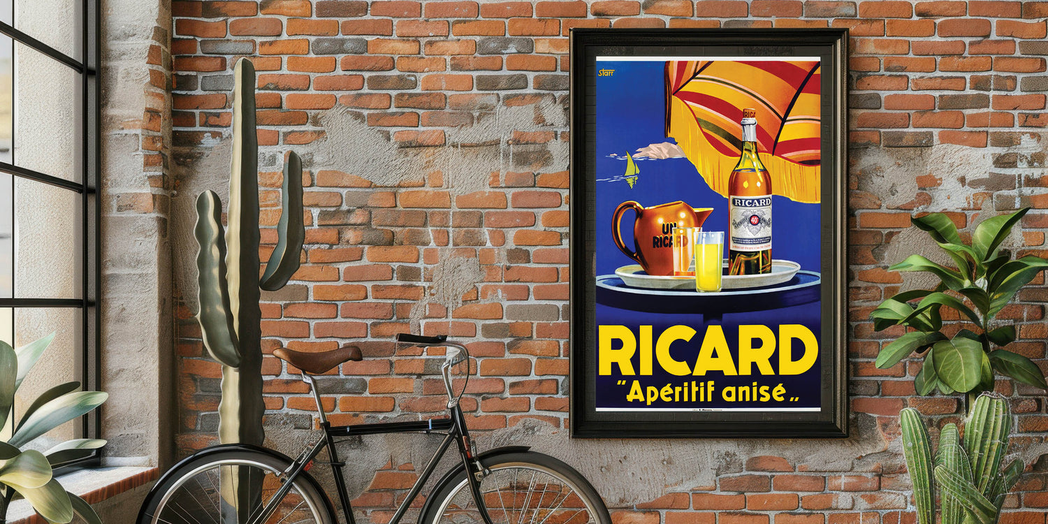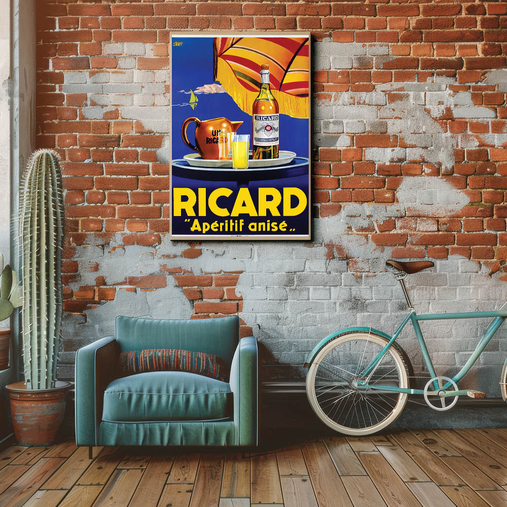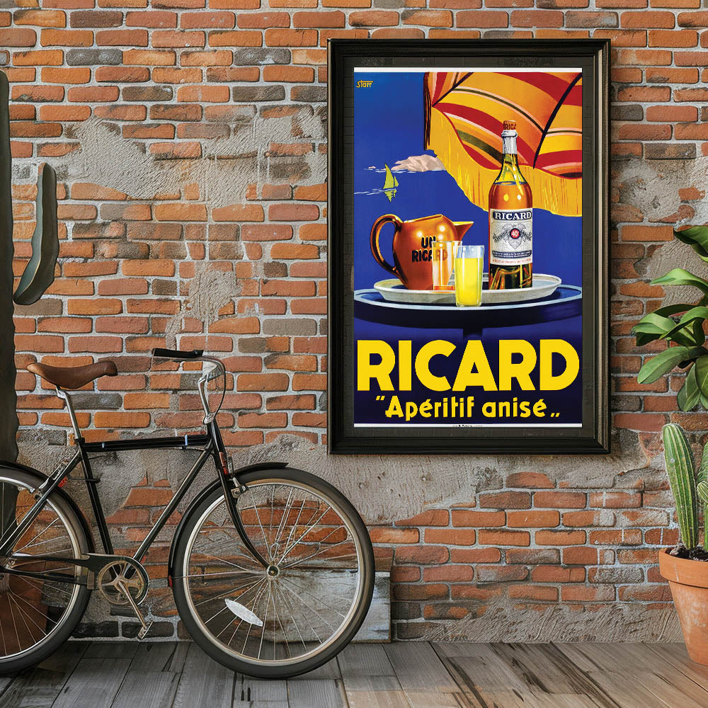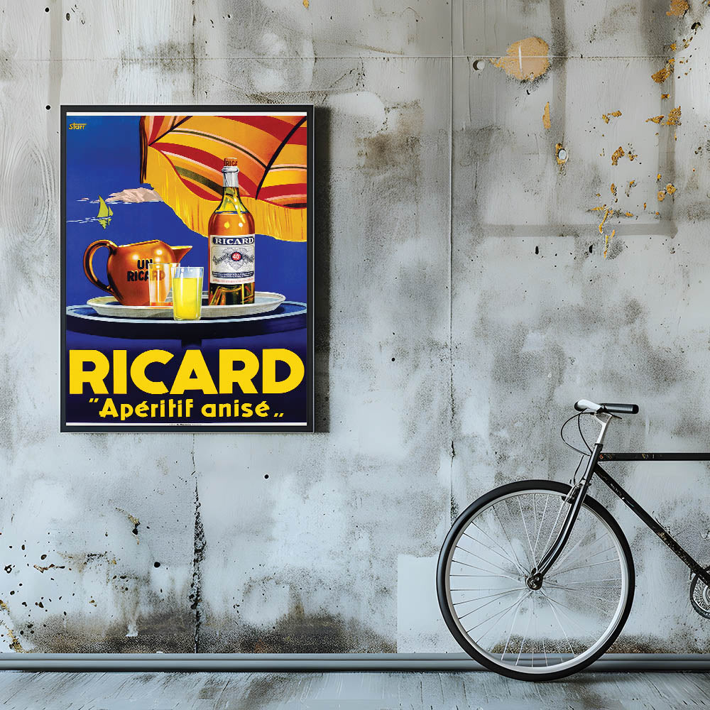 - High-quality reproduction of a vintage Ricard Apéritif ad