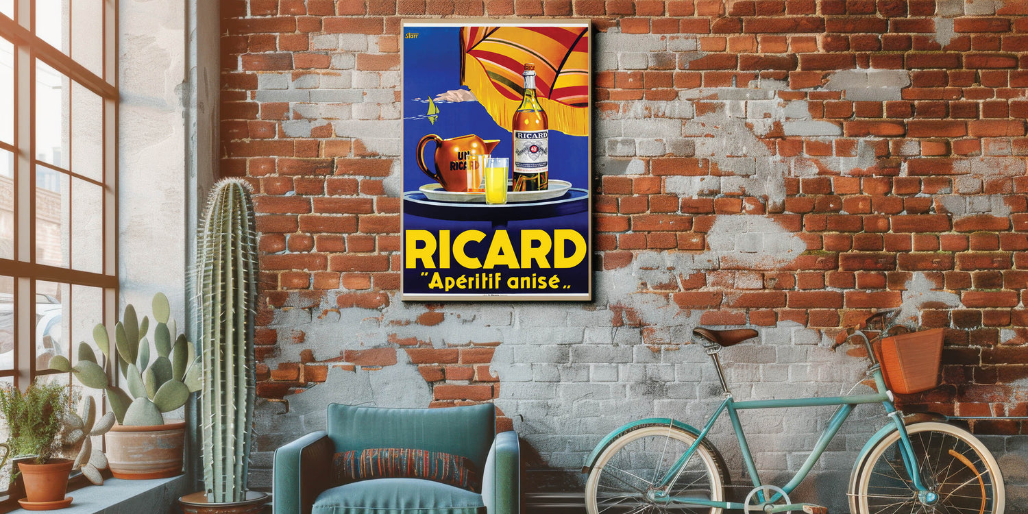 This historical advertising artwork brings a cheerful and laid-back atmosphere to your space. Whether you love Ricard Apéritif or simply appreciate vintage design, this poster will bring a touch of fun and color to your home.