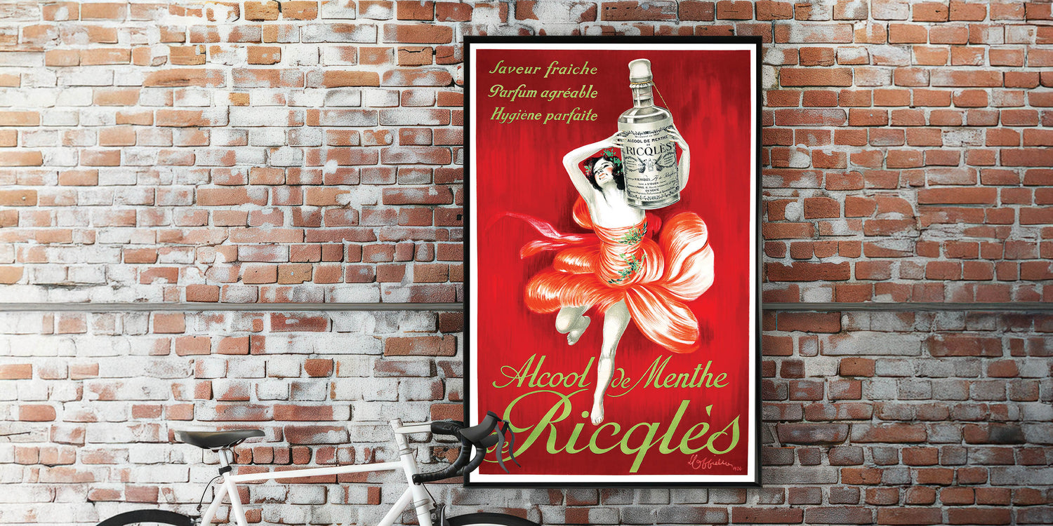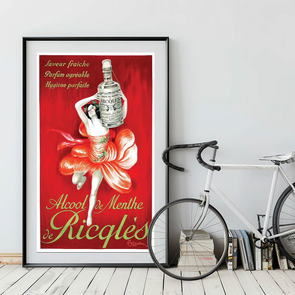 - High-quality reproduction of a vintage Ricqlès Alcohol de Menthe ad