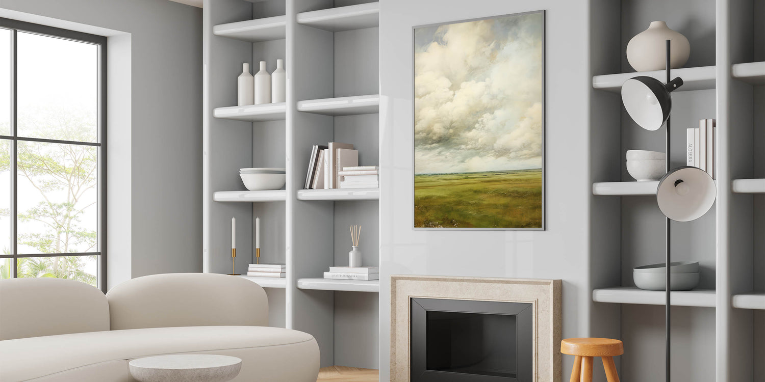 Vintage Rolling Fields Art – Classic Countryside Sky Print