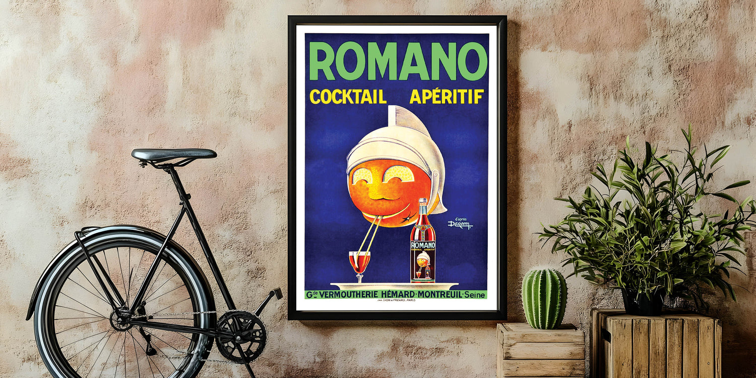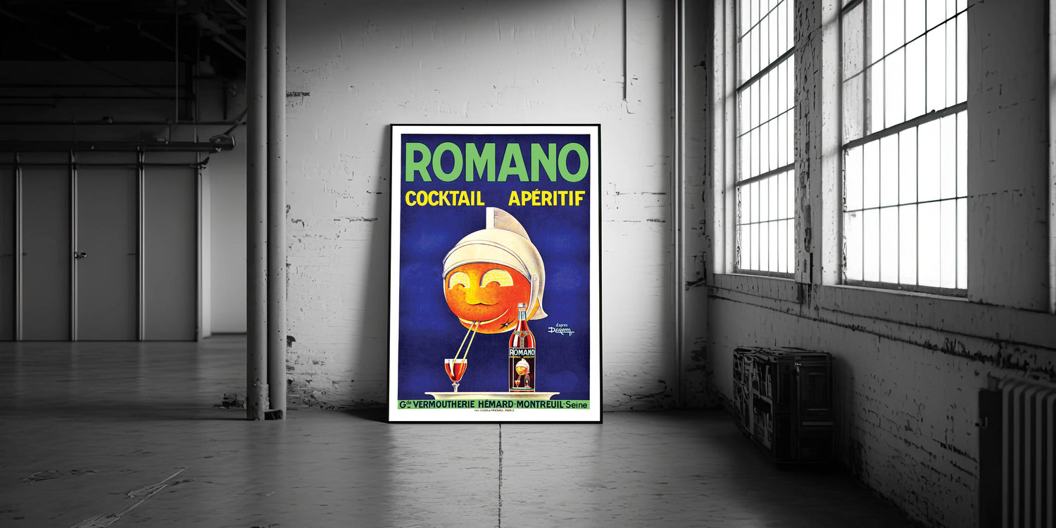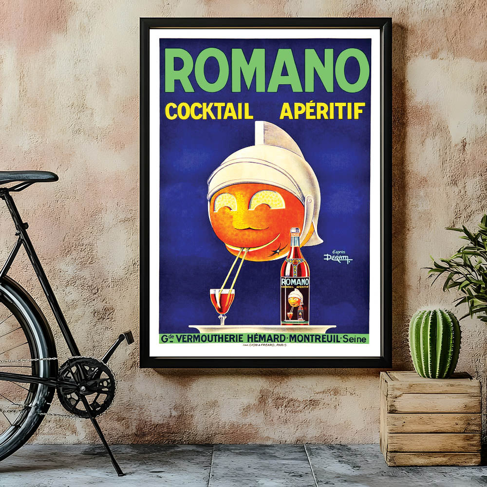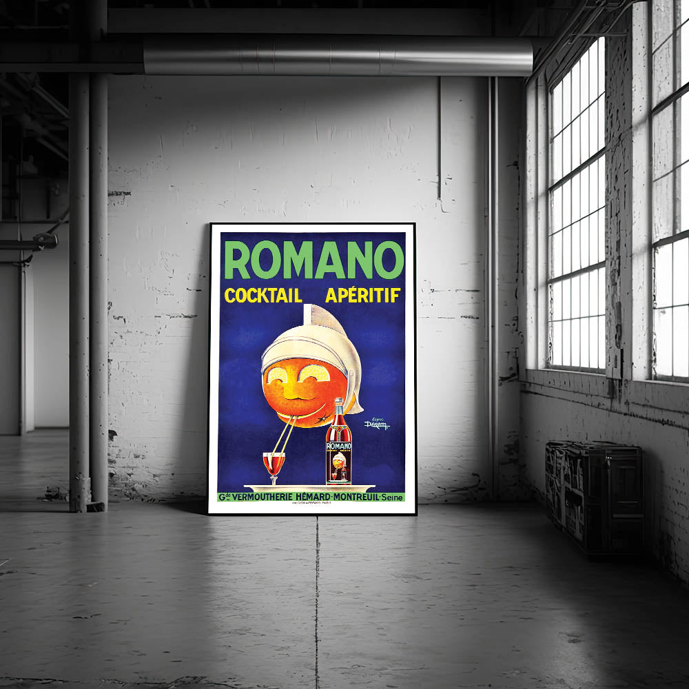 - High-quality reproduction of the Romano Cocktail Aperitif Poster