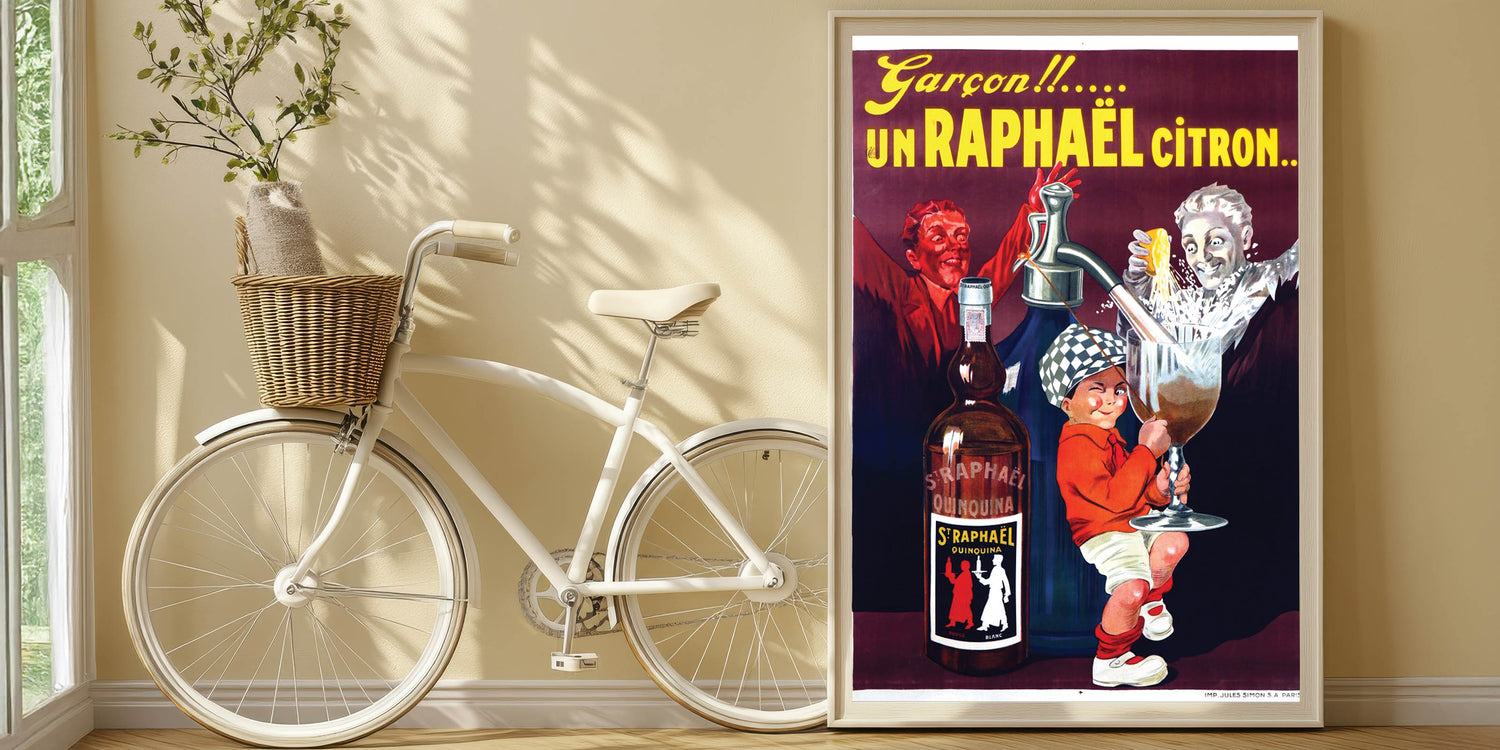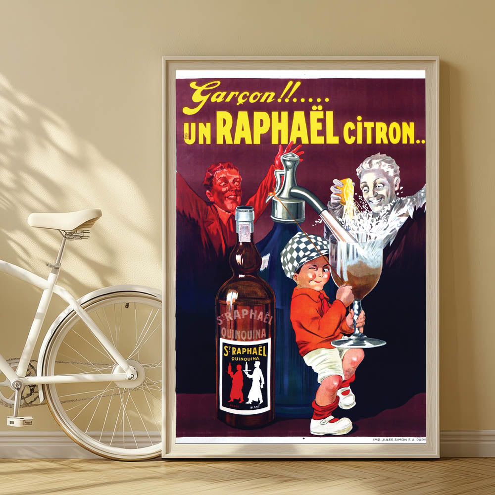 - High-quality reproduction of a vintage St. Raphaël Quinquina ad