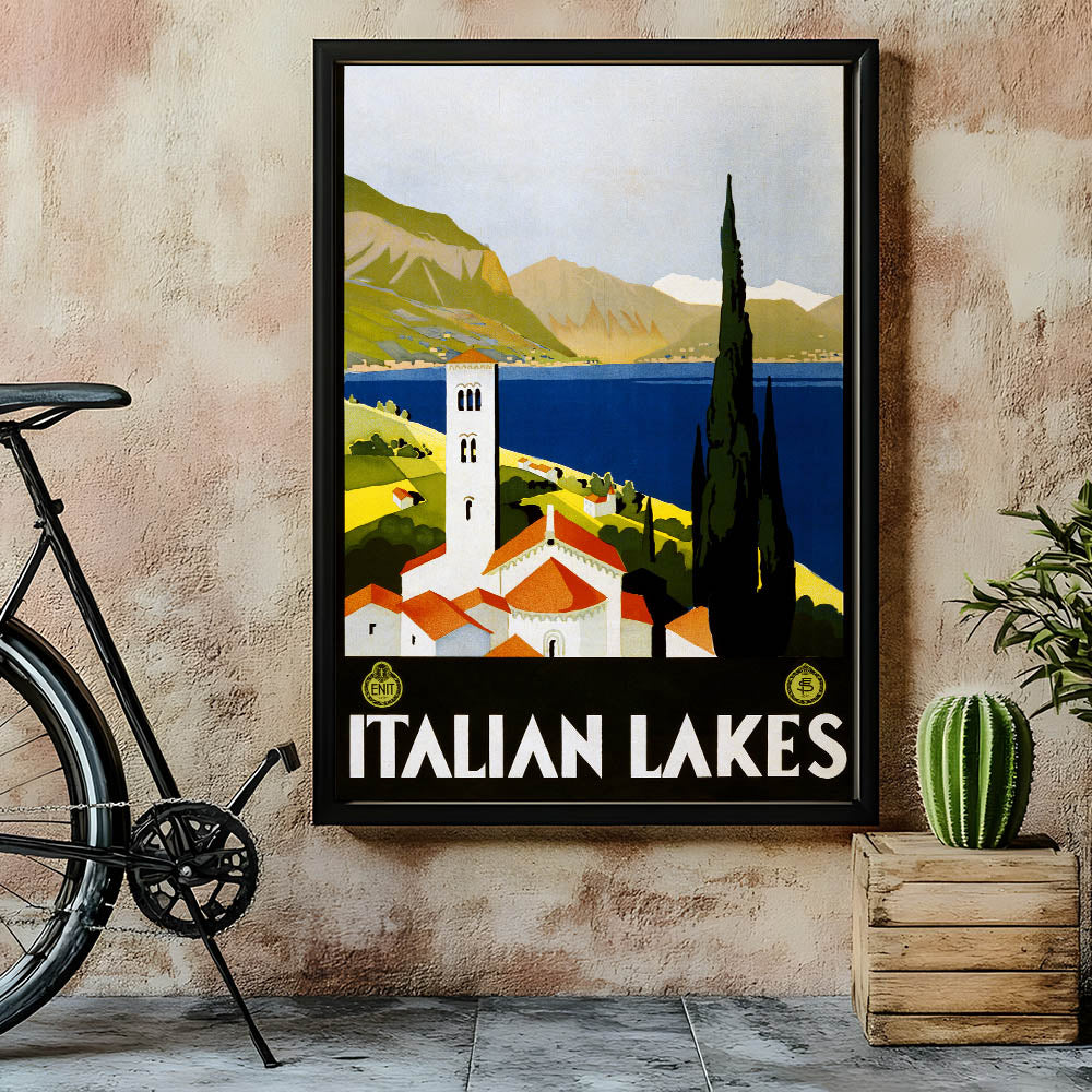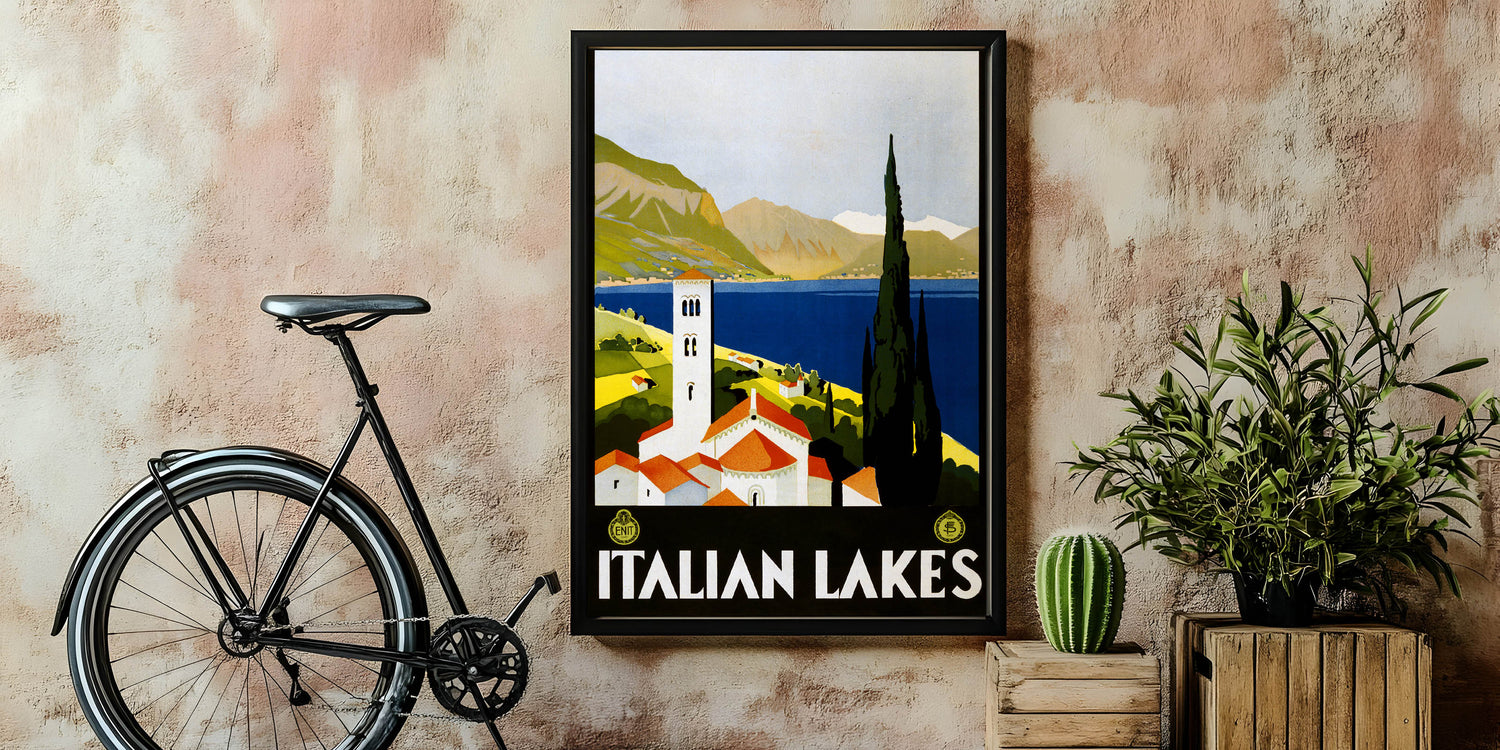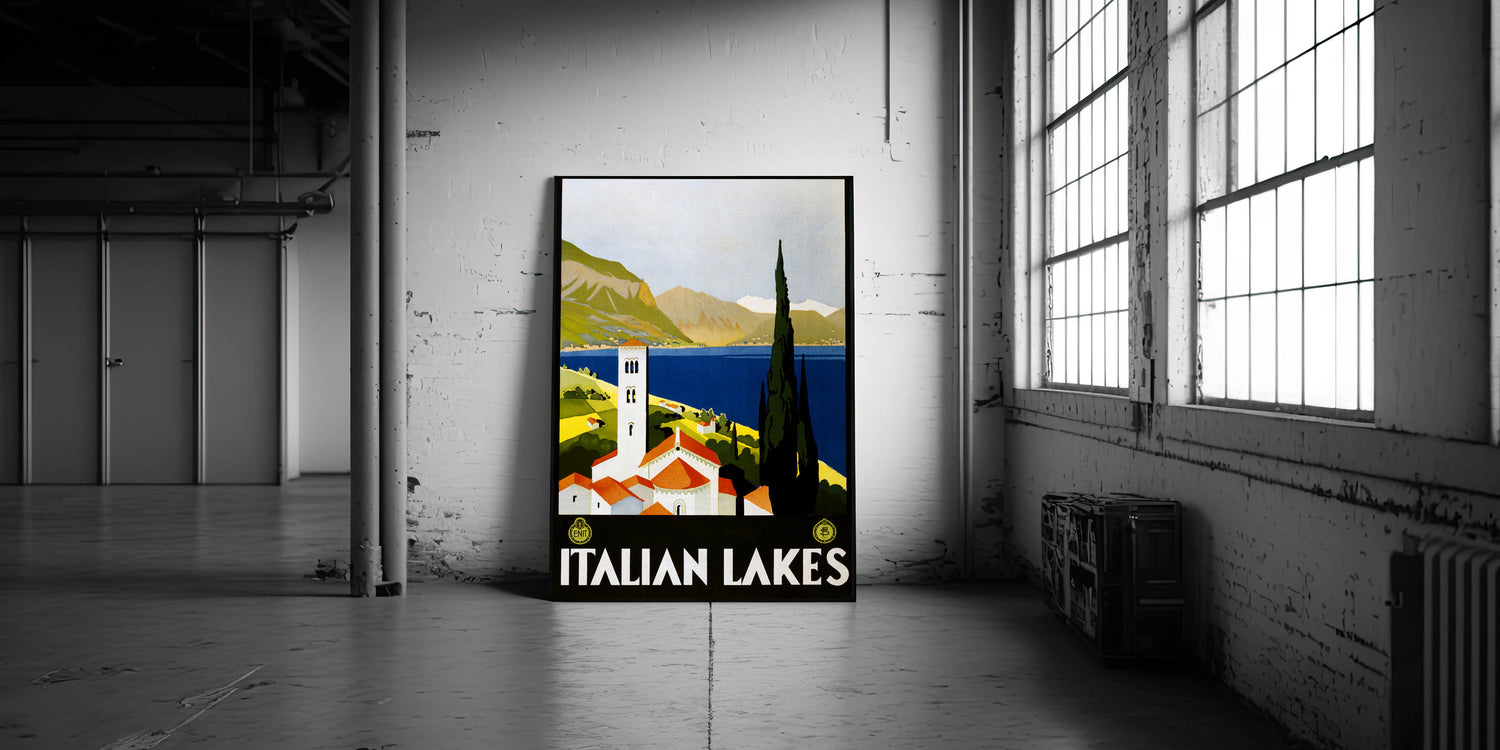 This classic vintage travel illustration brings a touch of European elegance into your home or office. Whether you're decorating a lakeside cabin or just love Italian heritage, this retro travel print is sure to captivate.
