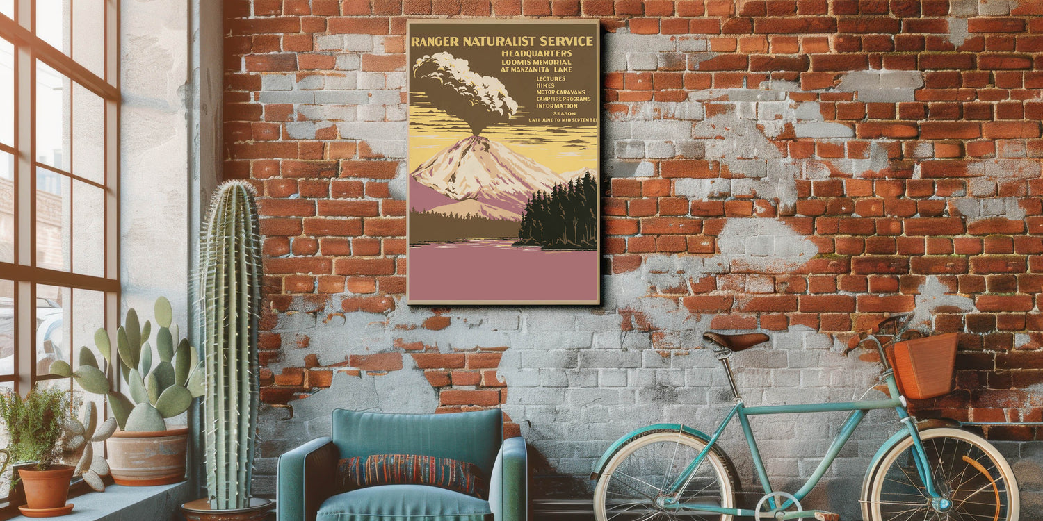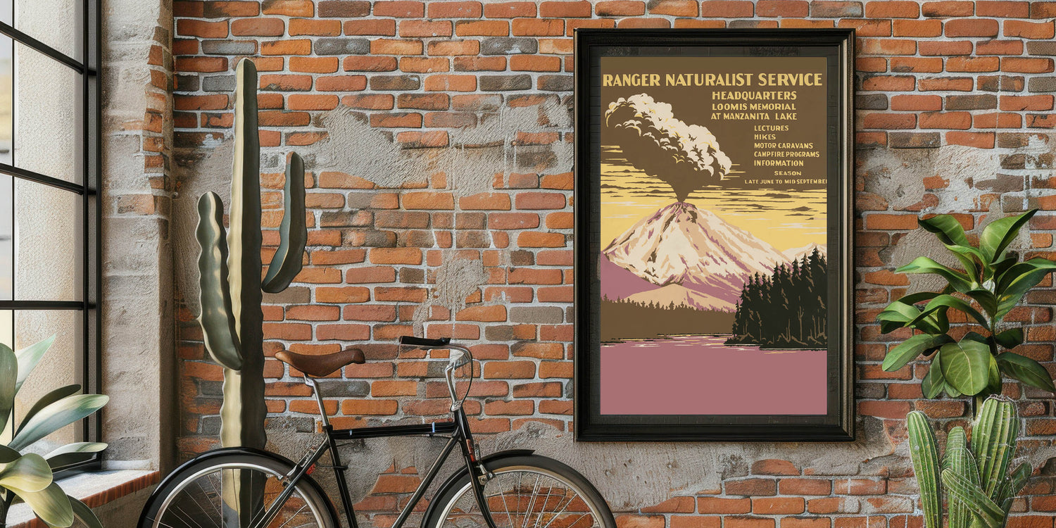 Embrace the raw beauty of nature with this Vintage Travel Poster featuring Lassen Volcanic National Park. Showcasing an erupting volcano amidst soft yellows, earthy browns, and muted purples, this artwork captures the essence of retro tourism art. The bold contrasts and detailed landscape evoke a sense of adventure, making it a perfect choice for nature enthusiasts and fans of classic travel decor. The vintage style and warm tones transport you to a timeless era of exploration.