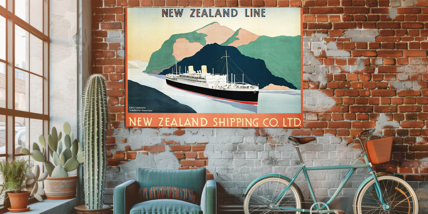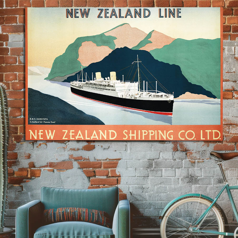 Vintage Travel Poster - New Zealand Shipping Line | Retro Travel Print
