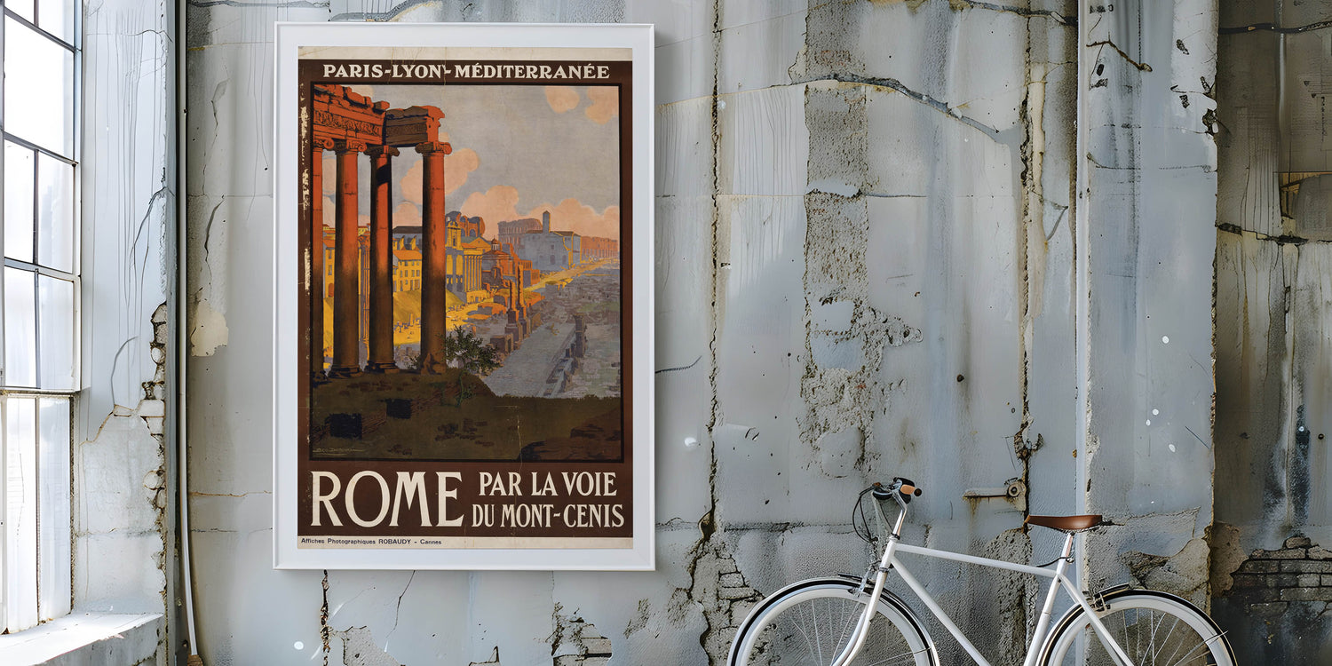 Bring the grandeur of Rome into your home with this nostalgic travel print. Its warm tones and detailed design make it a captivating focal point. Order now to transform your space into a tribute to Italy's ancient splendor!