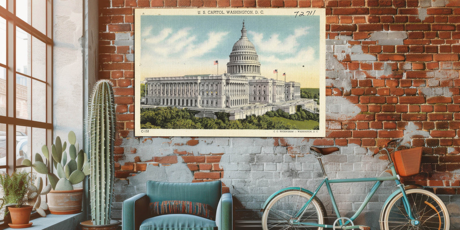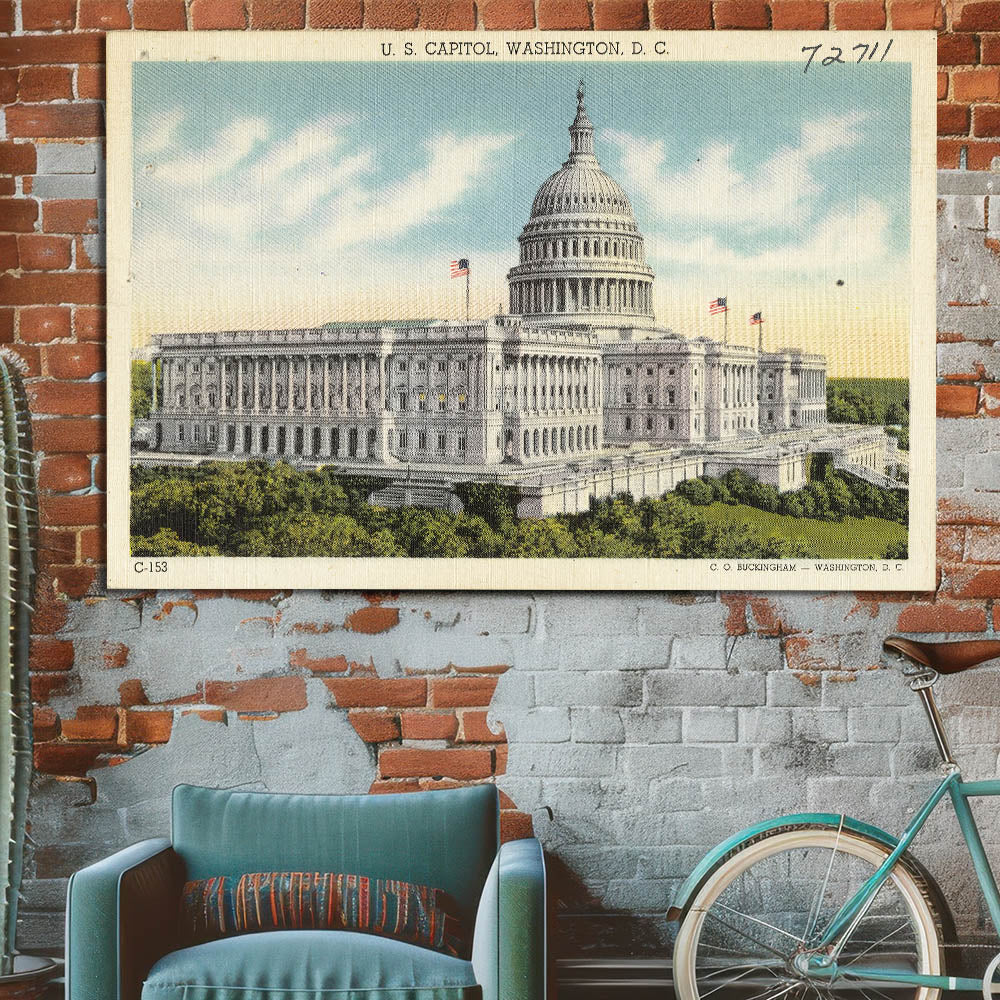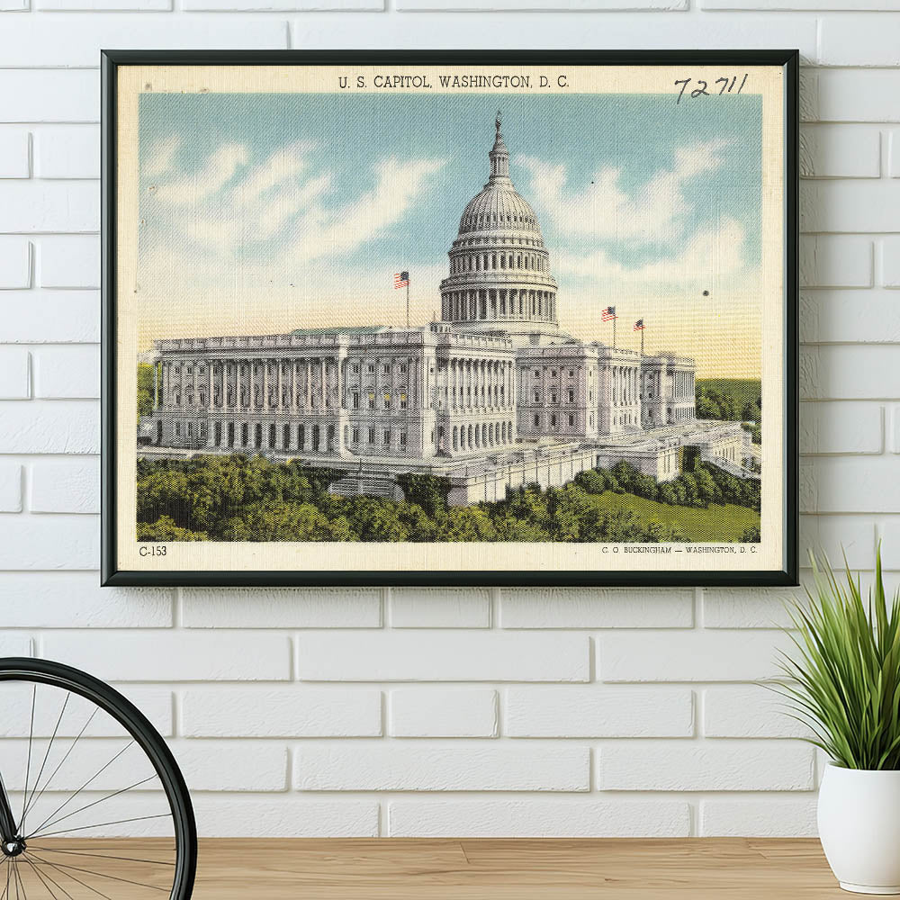 Vintage U.S. Capitol Poster - Retro Washington D.C. Travel Art