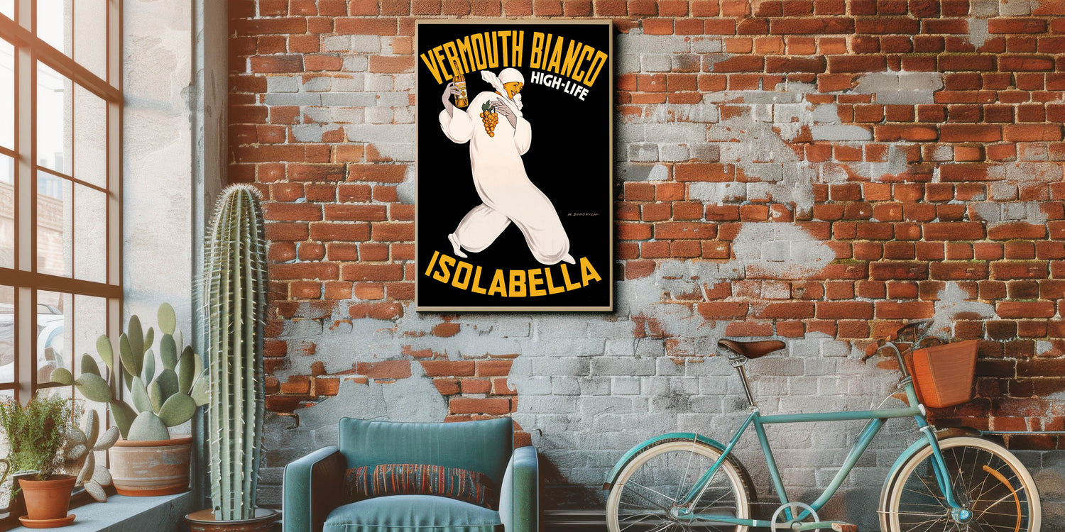• Timeless vintage print showcasing the elegance of classic Italian vermouth advertising.