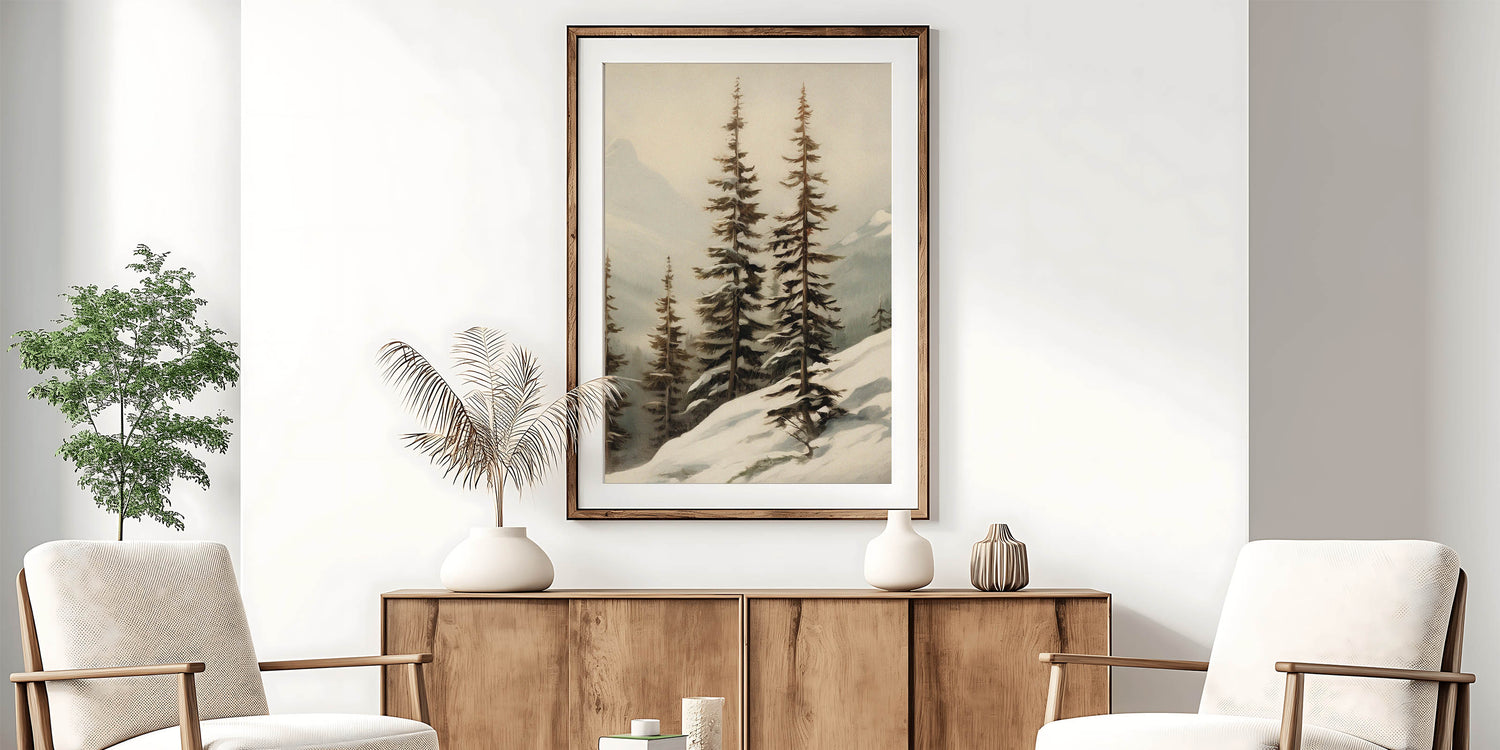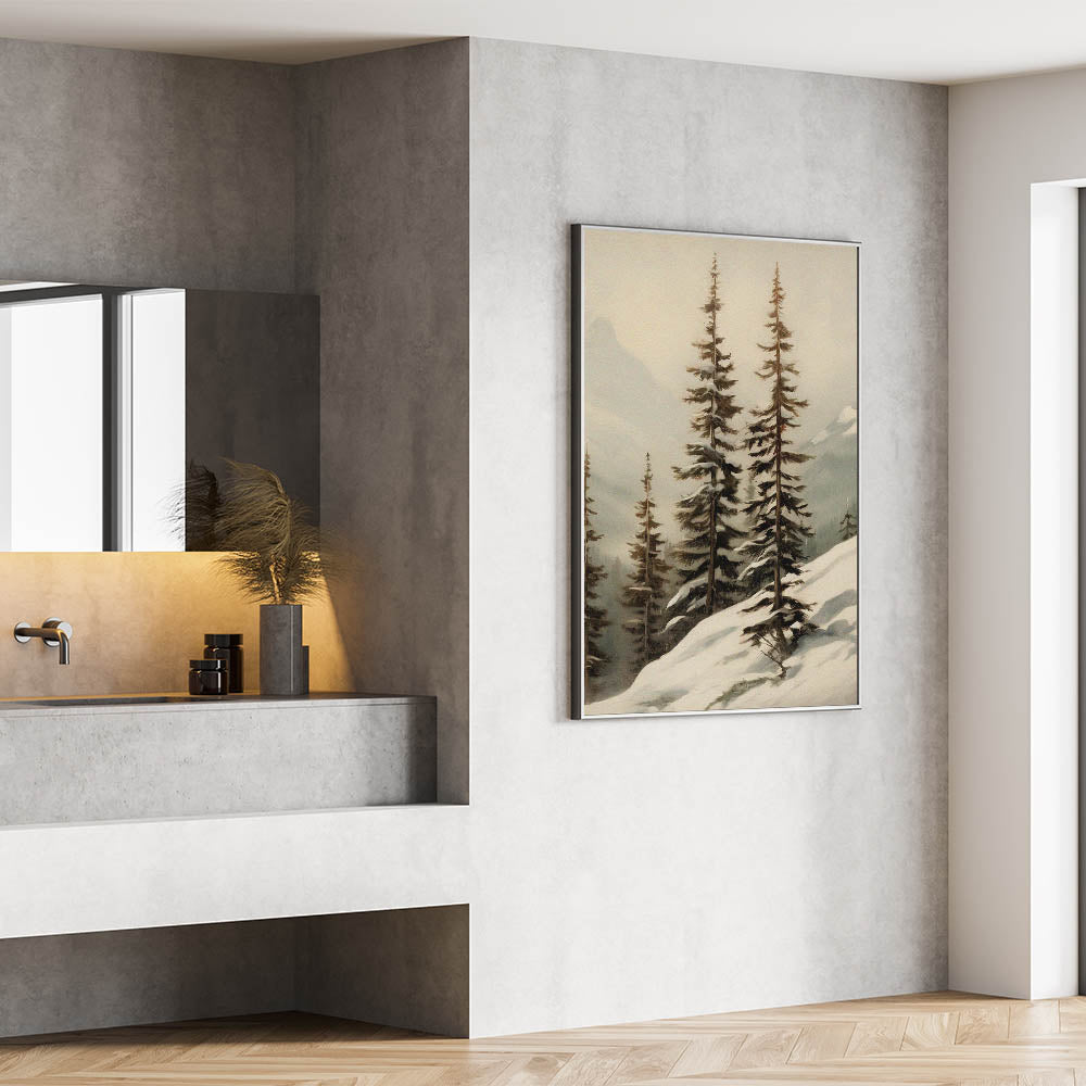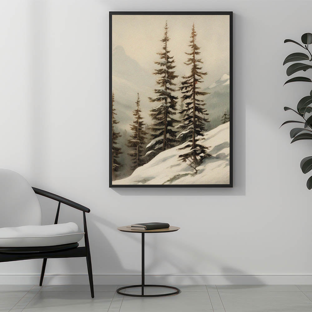 Bring the serenity of nature into your home with this Vintage Winter Landscape Print, featuring a tranquil snow-covered forest with tall evergreen trees. This botanical wall decor captures the essence of historical botanical art, blending the beauty of winter scenery with soft, earthy tones. Perfect for creating a cozy, vintage-inspired space.
