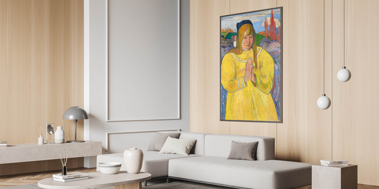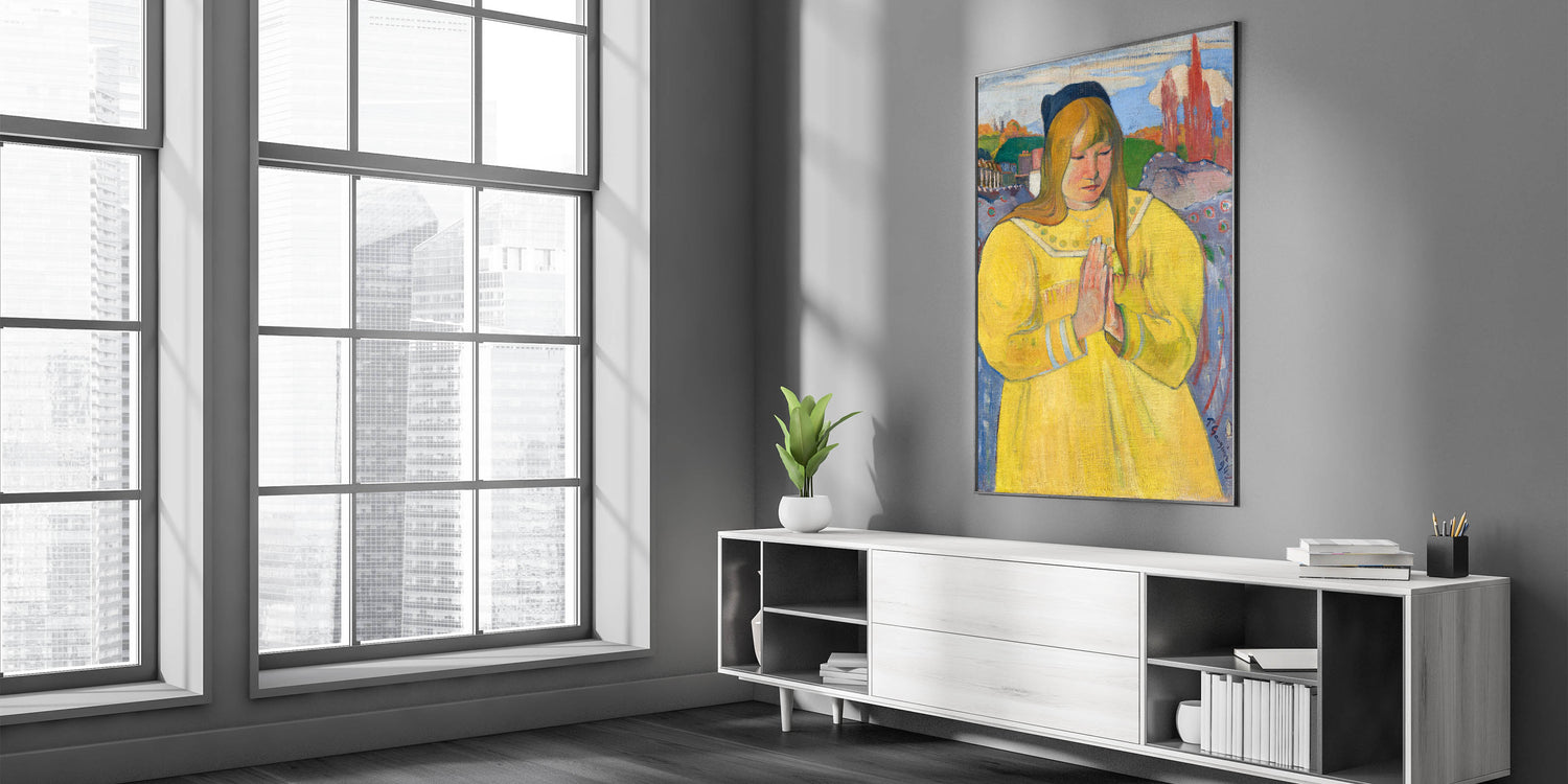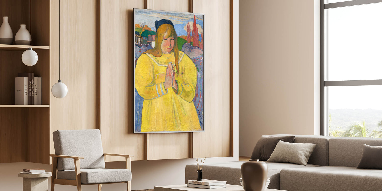 Enhance your space with this vibrant and expressive art print, "Young Christian Girl" by Paul Gauguin. This artwork captures a serene moment of reflection, with the young girl depicted in a brilliant yellow dress, hands folded in prayer. The vivid colors and unique style reflect Gauguin’s post-impressionist approach, blending elements of both modern and traditional art. This piece is ideal for those who want to bring a touch of warmth and cultural richness to their contemporary decor.