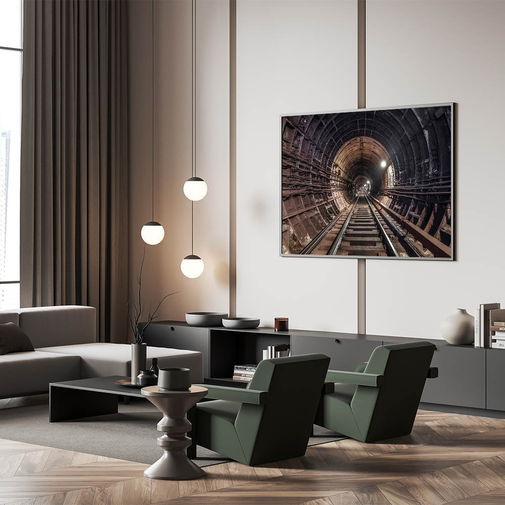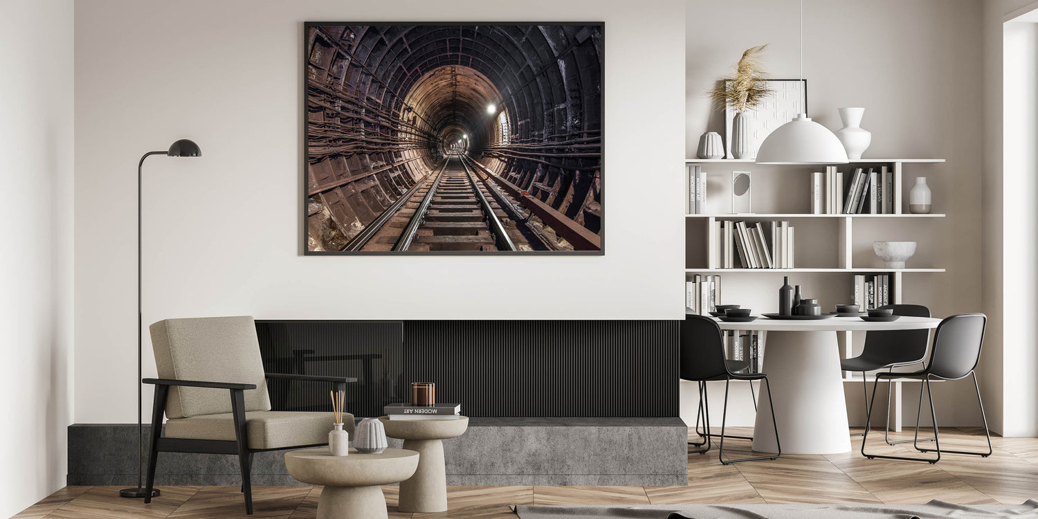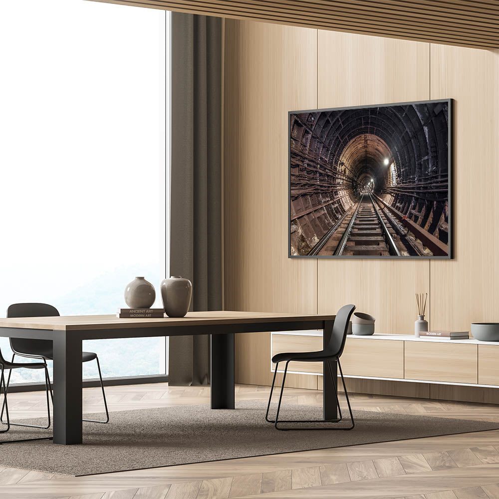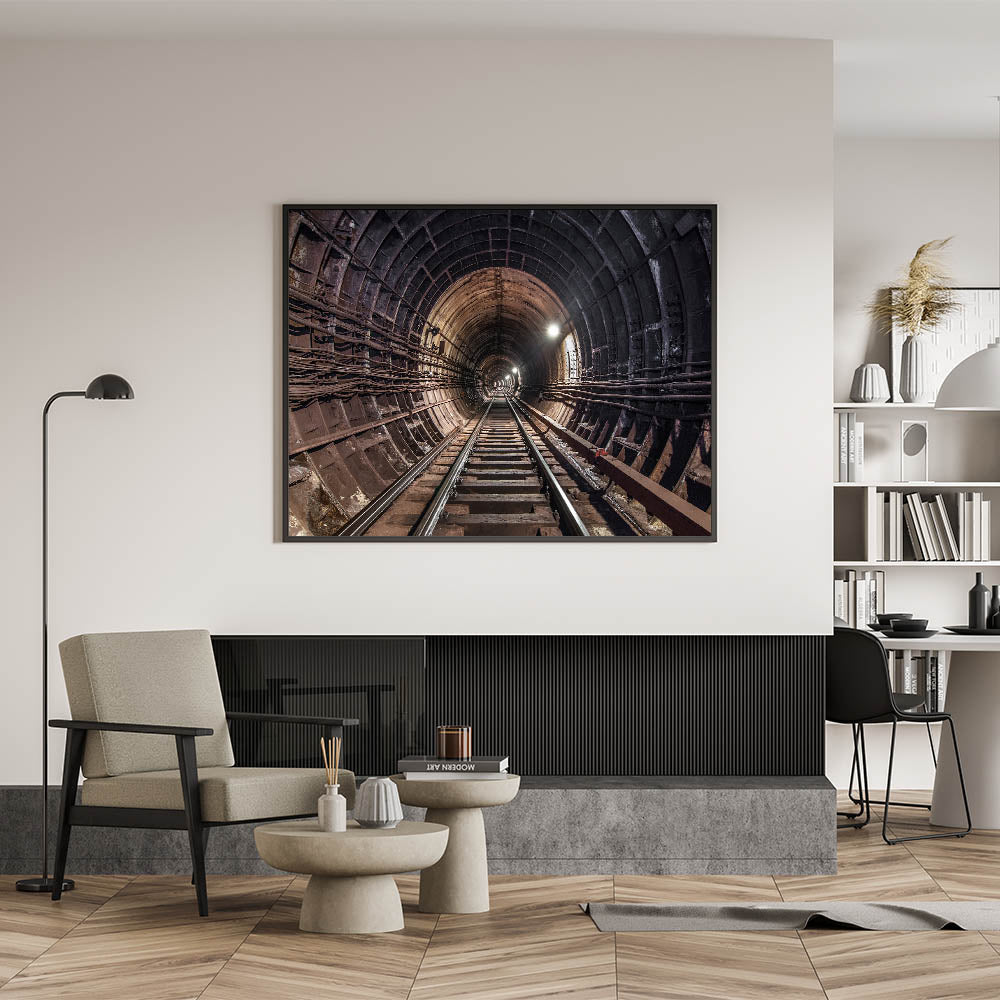 This wall art isn't just a decoration; it's a statement piece that reflects the intricate beauty of urban infrastructure. Whether you’re a city dweller, a fan of subway-themed art, or someone who appreciates the aesthetics of industrial design, this subway tunnel canvas print will elevate your space with its bold and dynamic presence.