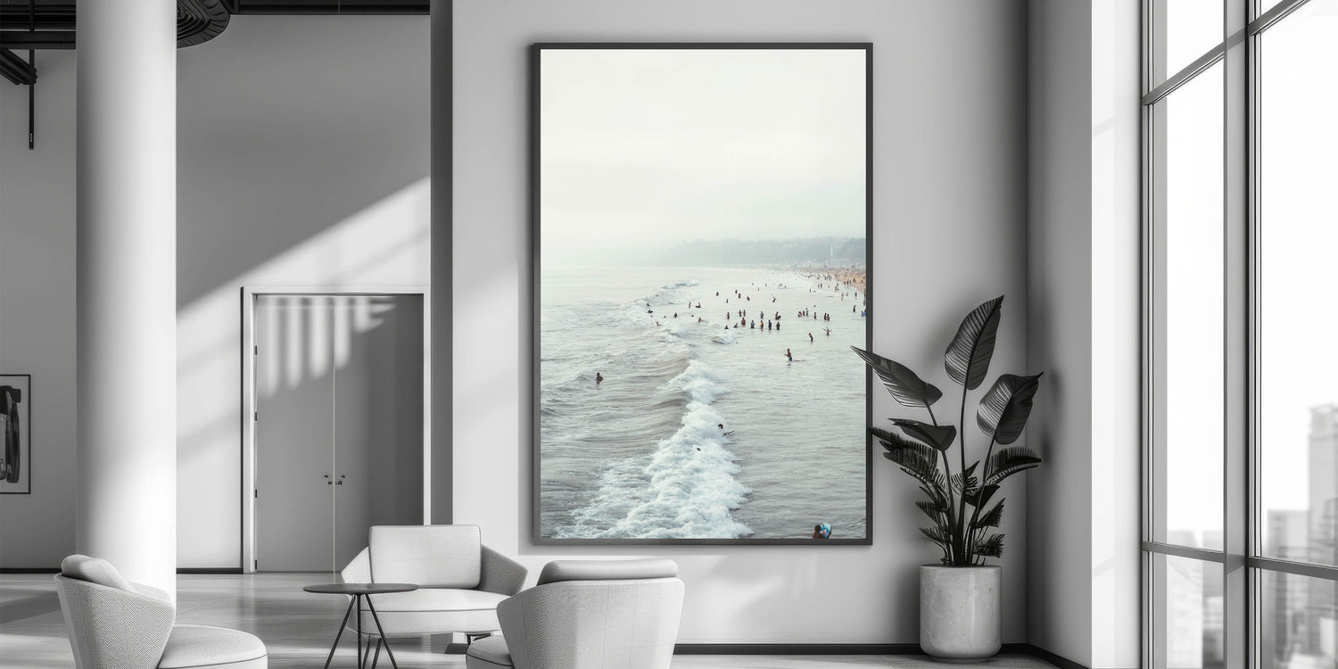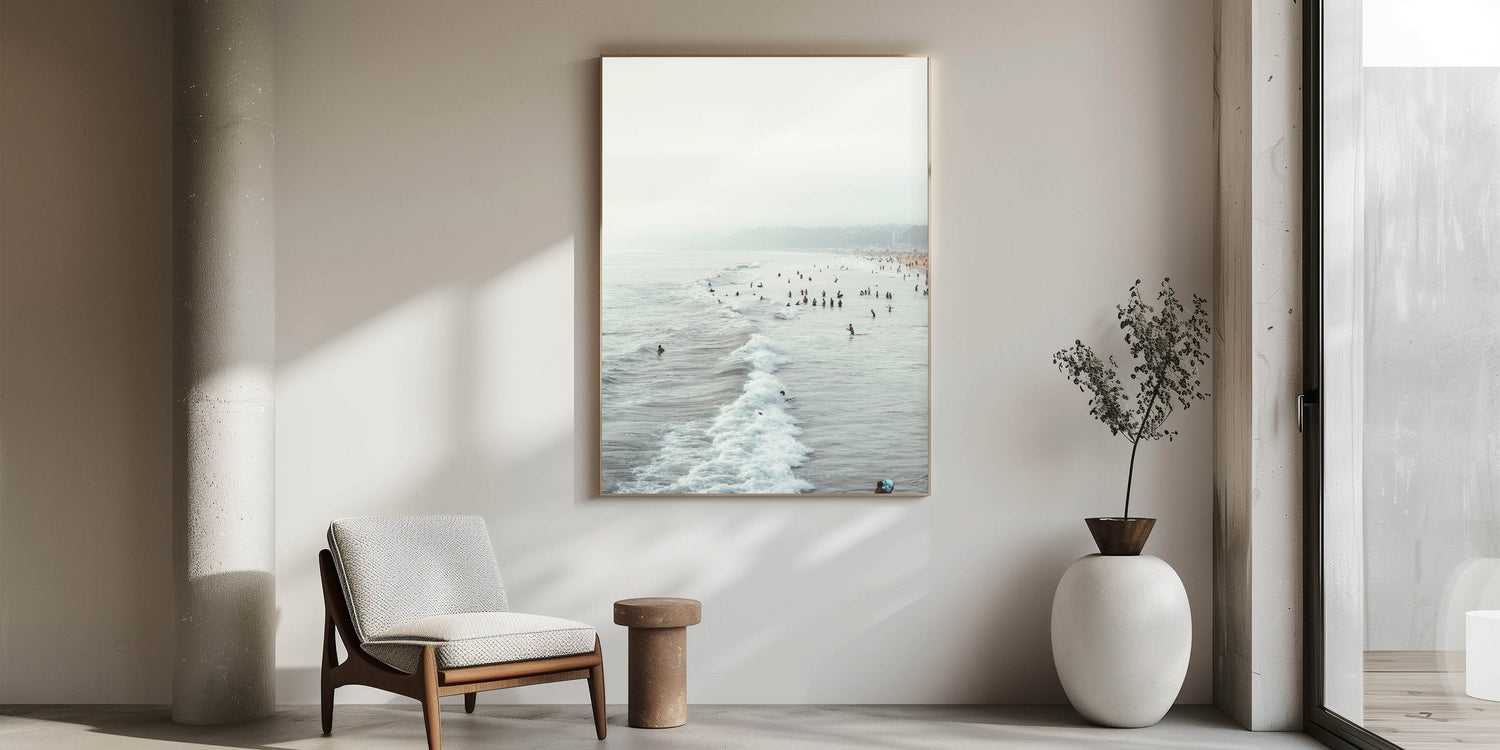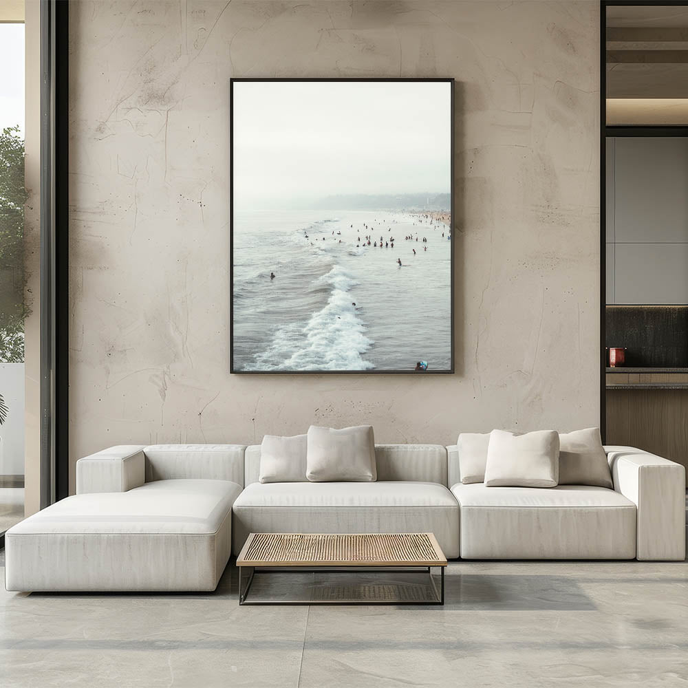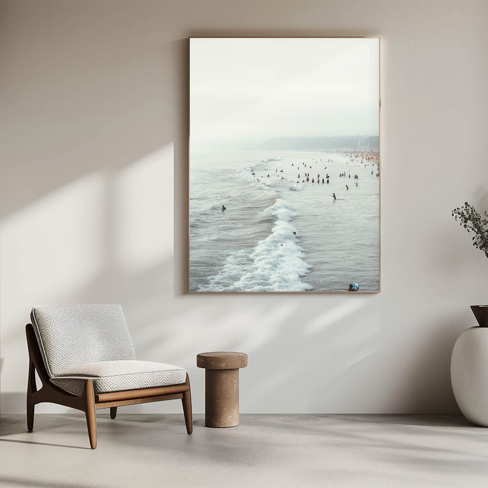 Feel the energy of a lively summer beach day with this coastal wall art, featuring ocean waves rolling onto a bustling shoreline filled with people enjoying the refreshing water. The soft misty atmosphere adds a relaxing yet dynamic vibe, making it a perfect addition to any home, beach house, or office space. Whether you’re drawn to the thrill of the ocean or the nostalgia of sun-filled days, this beach wall decor captures the essence of summer fun.