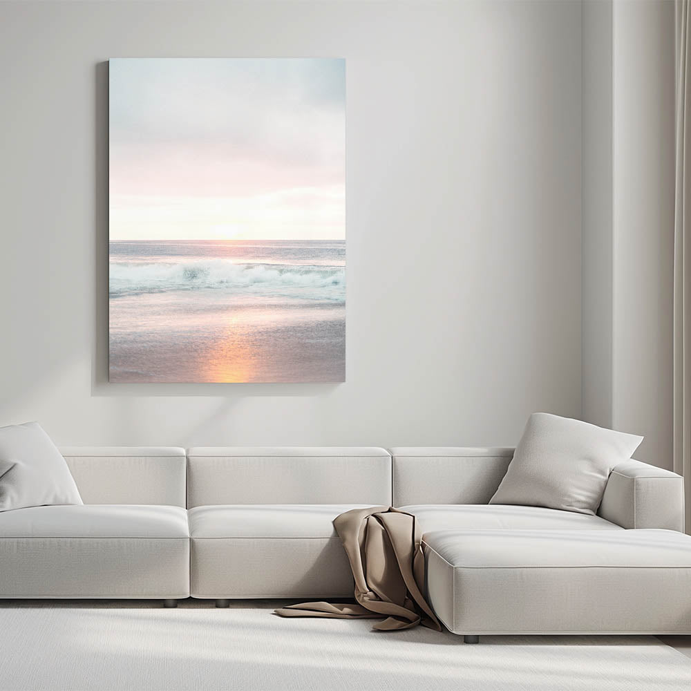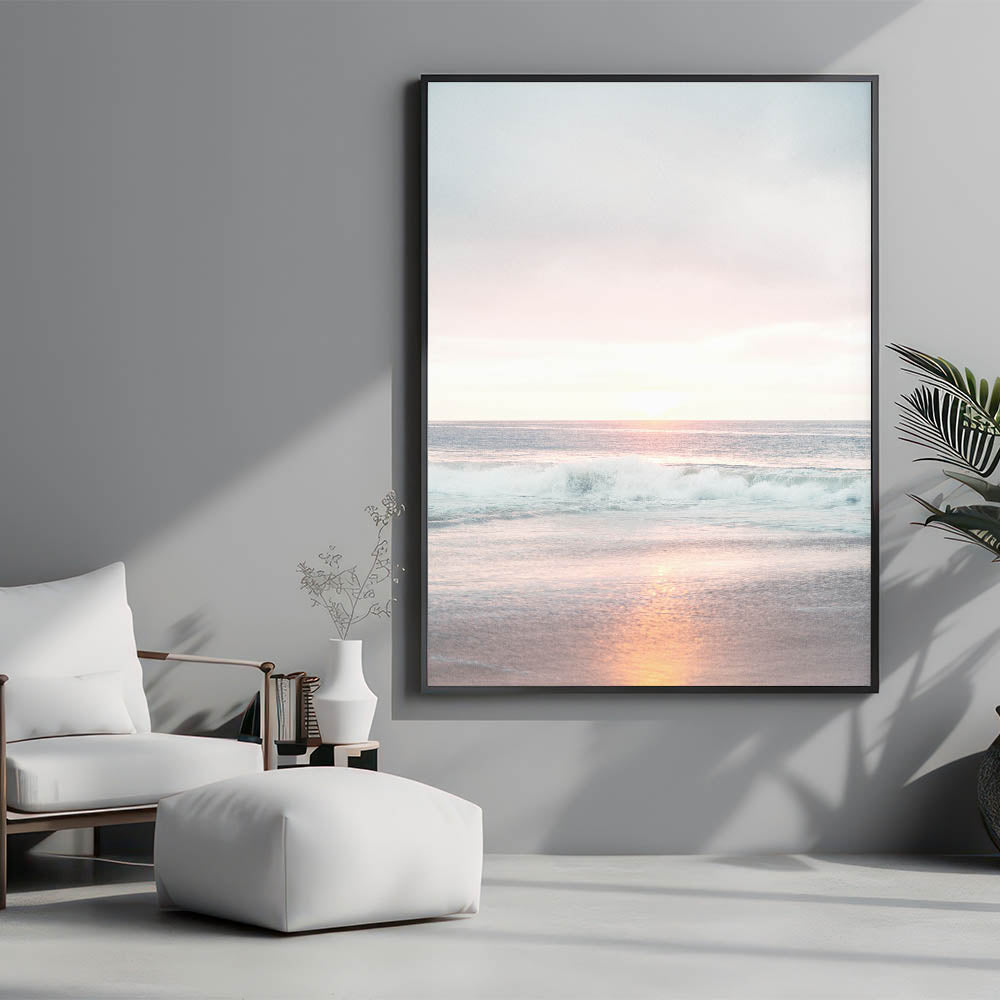 Bring the magic of summer evenings to your space with this captivating sunset canvas art. Featuring soft waves lapping the shore under a glowing sunset, this artwork highlights golden reflections, pastel skies, and tranquil waters. It’s an ideal addition to relaxing summer landscapes and seasonal home decor.