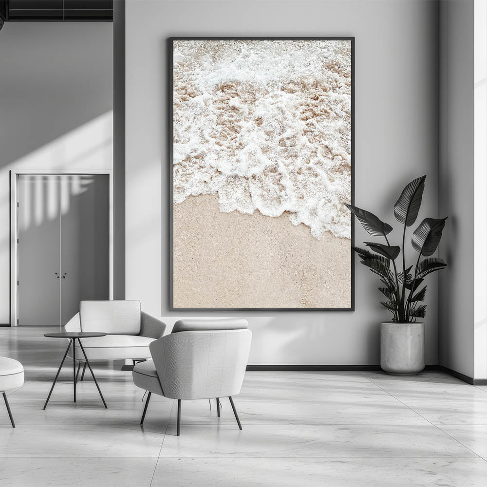 Experience the calm and beauty of the shore with this Foamy Ocean Waves on Sand Coastal Canvas. Featuring gentle foamy waves washing over smooth, sandy shores, this artwork perfectly captures the relaxing essence of summer. Ideal for creating a peaceful beach-inspired ambiance in your home.