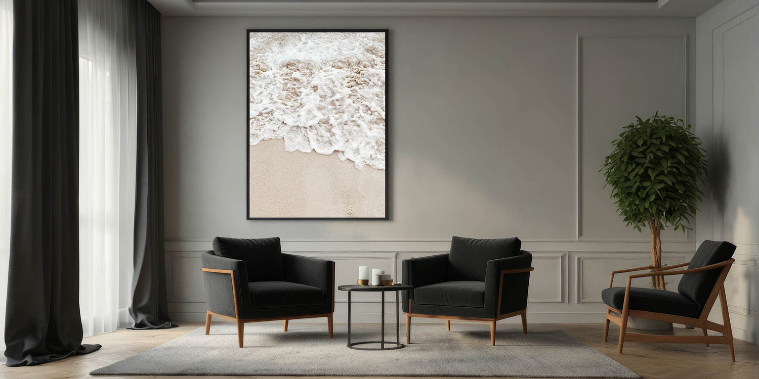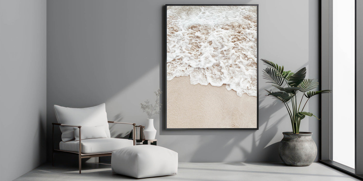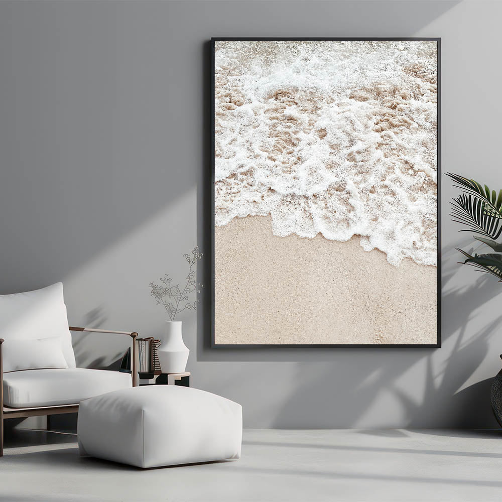 This timeless print showcases the beauty of nature, blending neutral hues and soft textures to evoke feelings of calm and relaxation. Whether used as a centerpiece or part of a gallery wall, this artwork complements modern, minimalist, or coastal interiors. Refresh your space with the quiet charm of summer waves and transform your home into a peaceful coastal retreat.