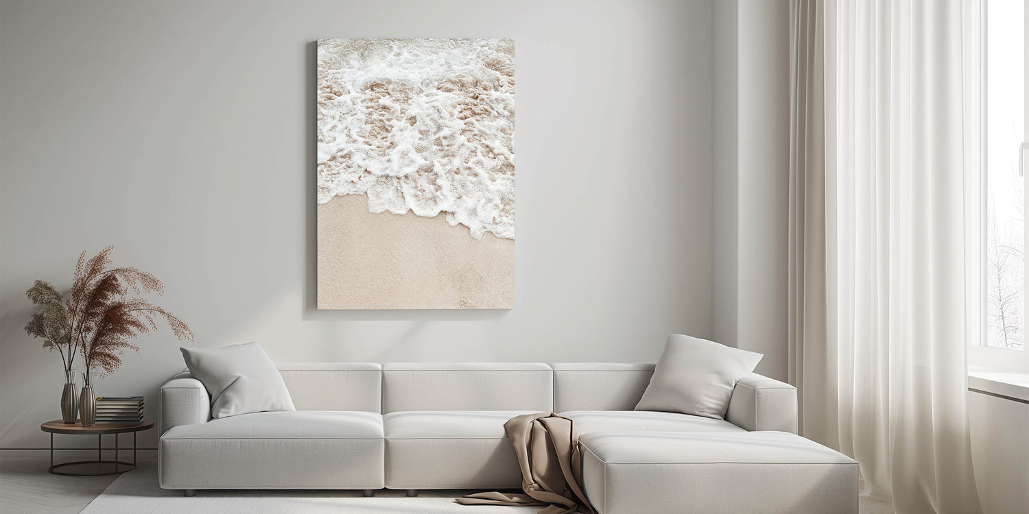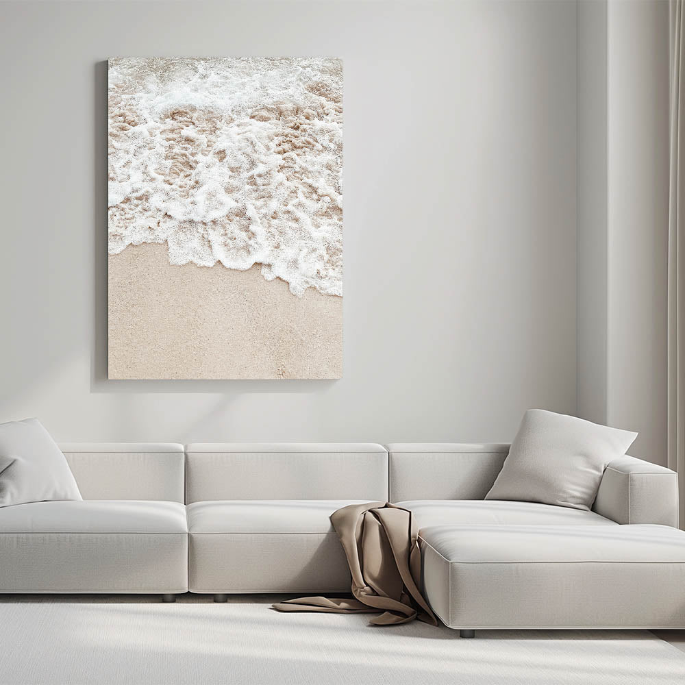 Beach Decor Prints - Foamy Ocean Waves on Sand Coastal Canvas