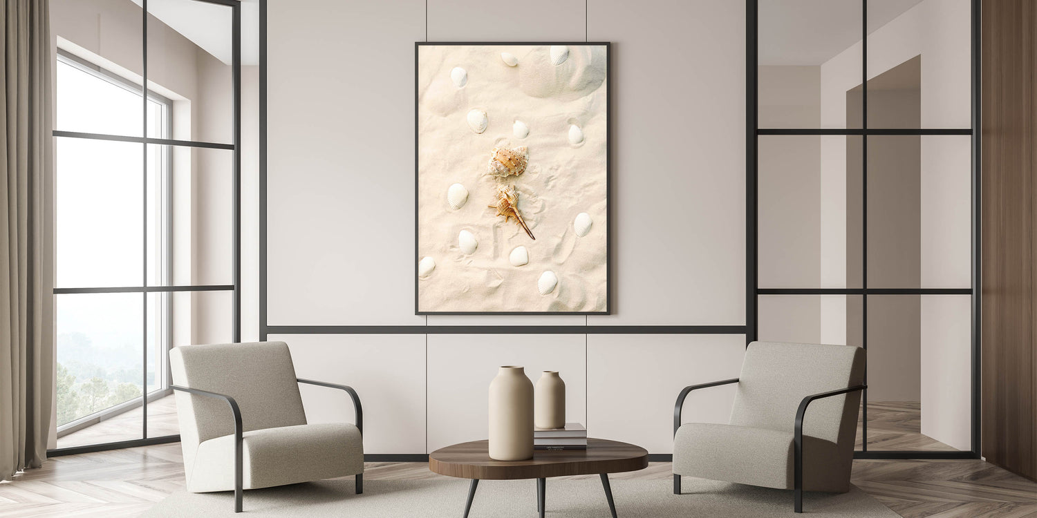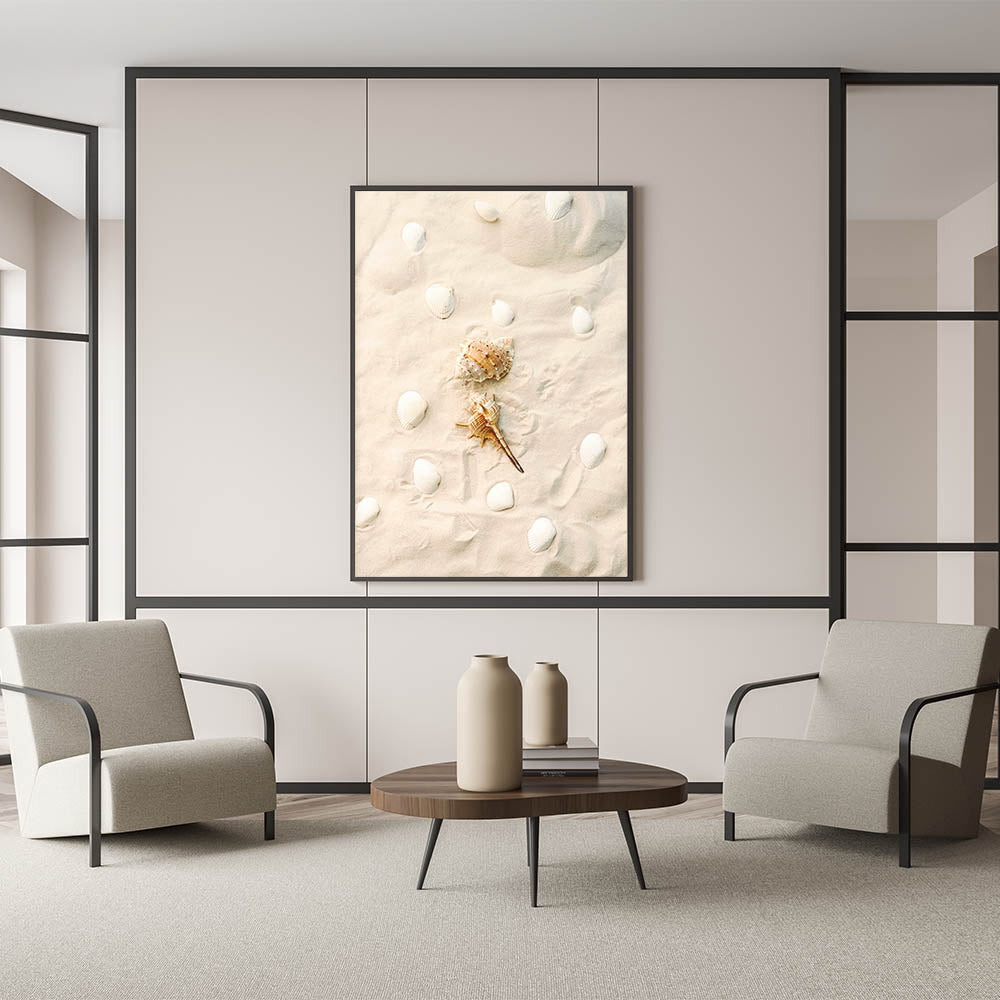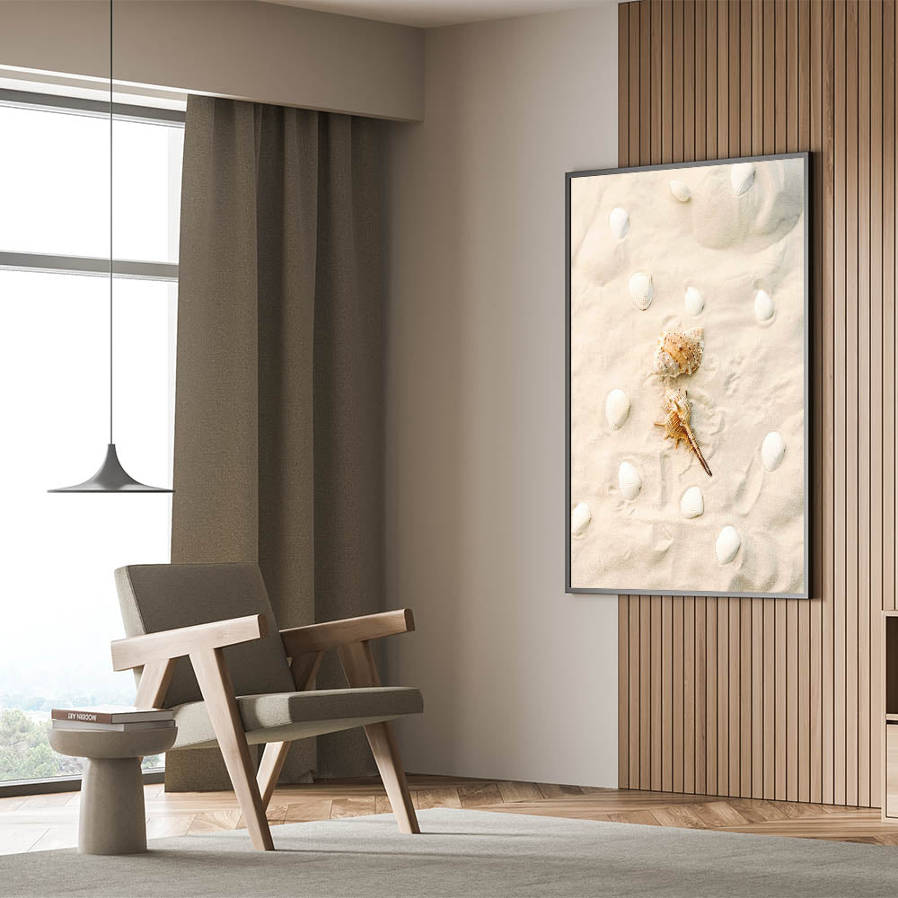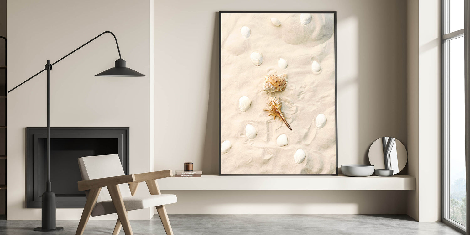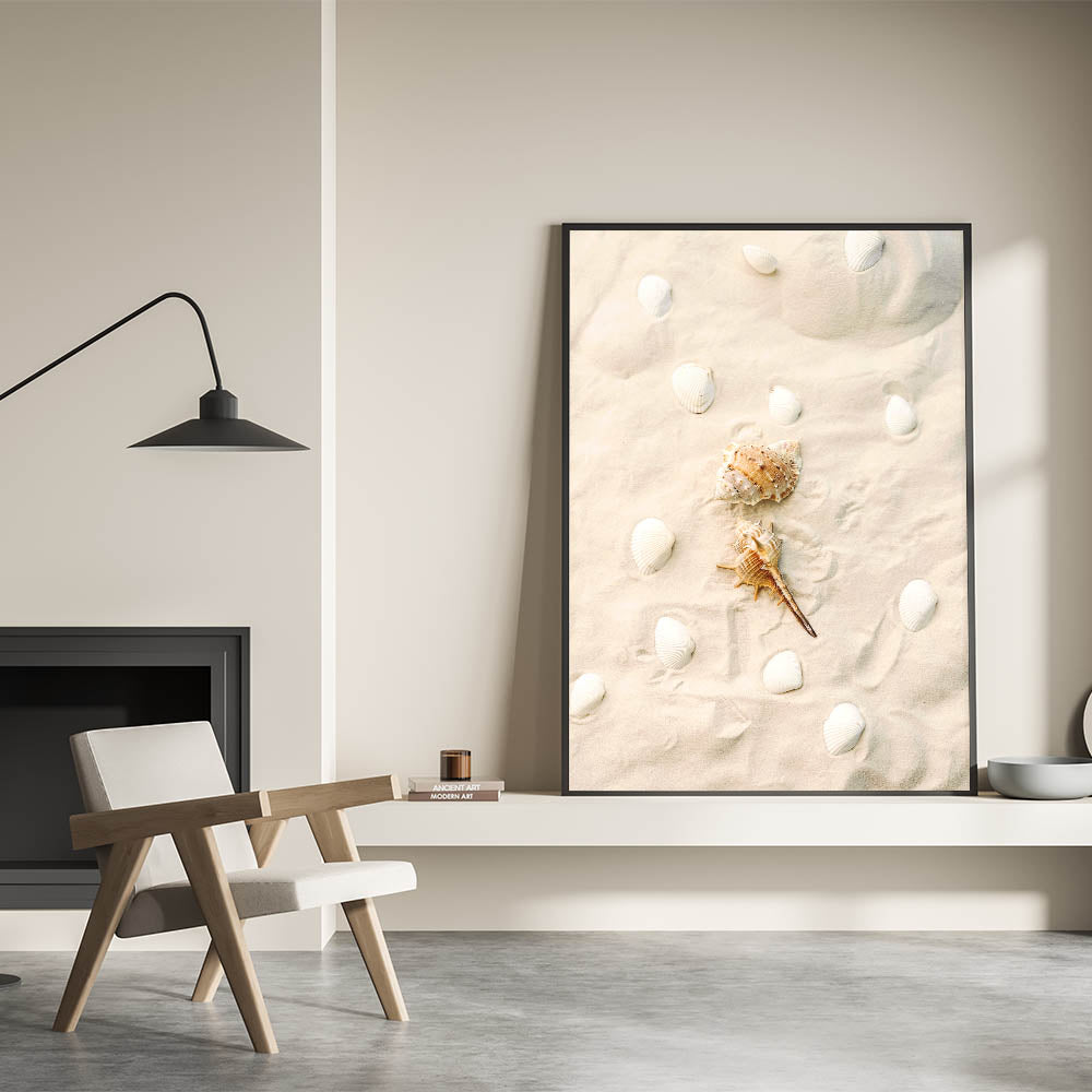 This elegant print creates a soothing atmosphere, ideal for coastal and minimalist interiors. The neutral tones of sand and seashells blend seamlessly with various decor styles, offering a timeless summer aesthetic. Perfect as a centerpiece or part of a gallery wall, this artwork brings the beauty and tranquility of the beach indoors, helping you create your own serene getaway.
