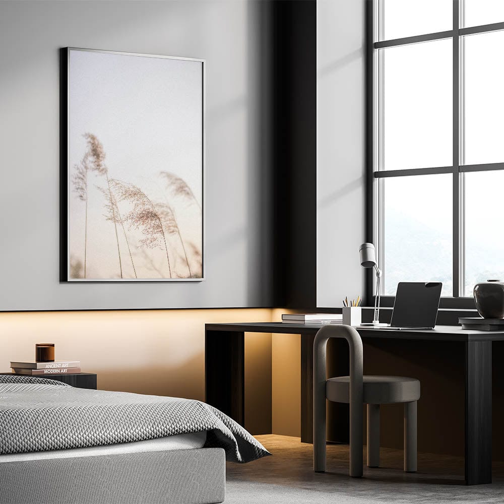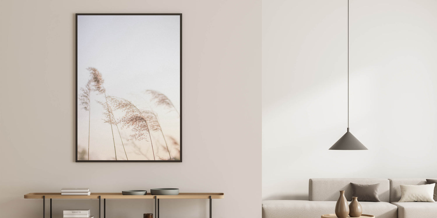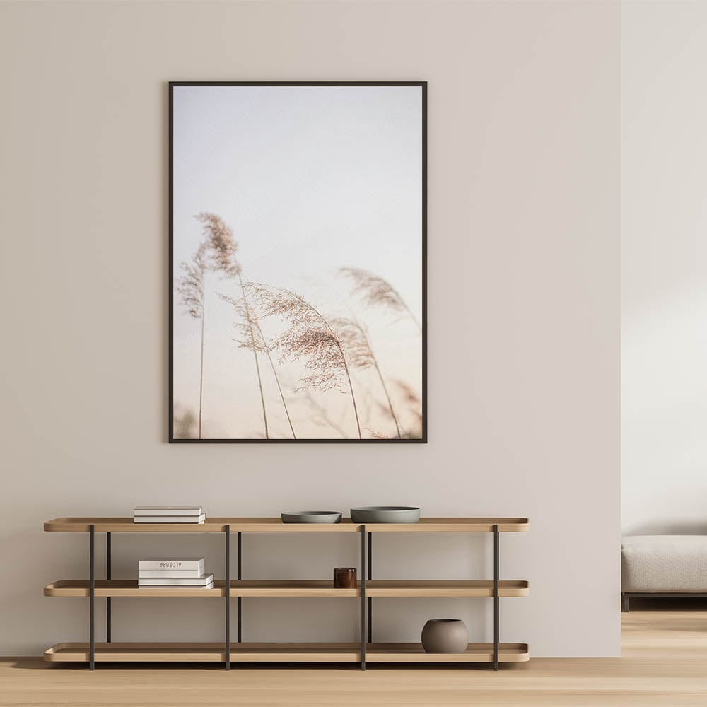 Create a calming and nature-inspired atmosphere with this elegant floral summer art. Featuring delicate reed grass swaying against a soft gradient sky in warm golden hues, this artwork embodies the beauty of a relaxing summer landscape. Perfect for seasonal home decor, the minimalistic design brings a serene touch of nature indoors.