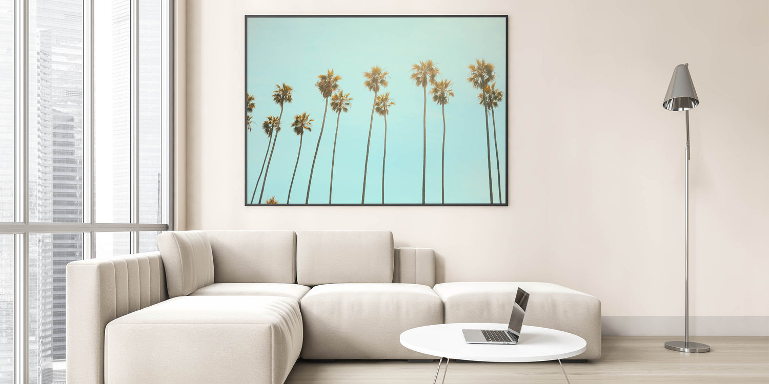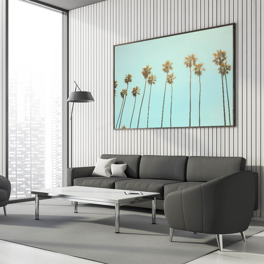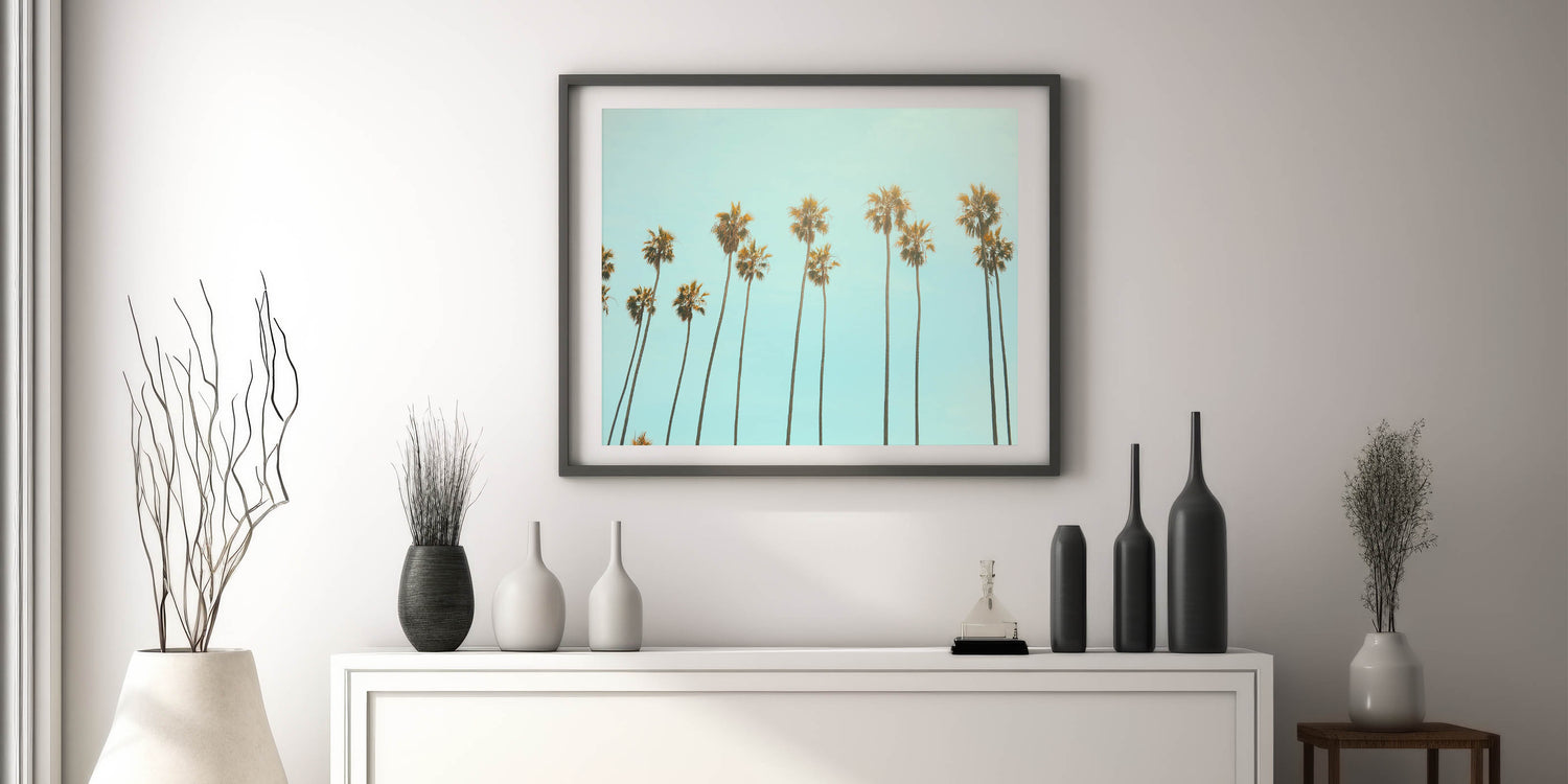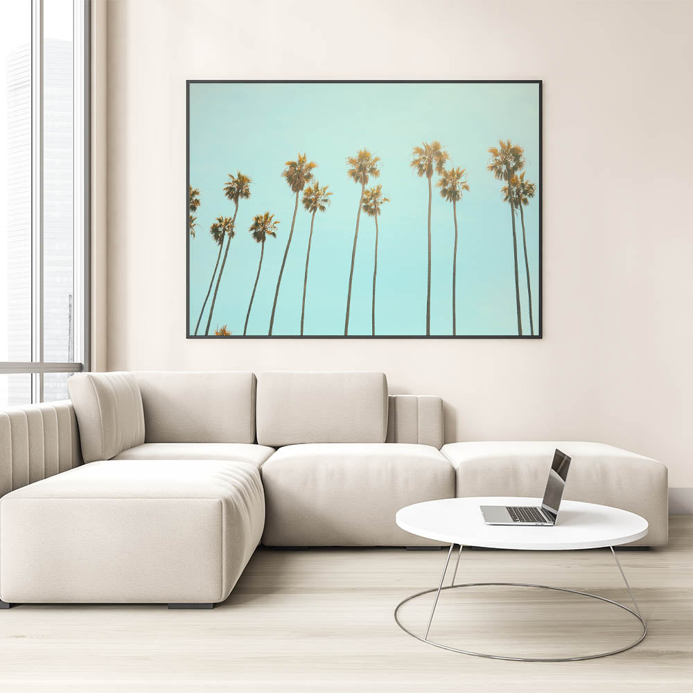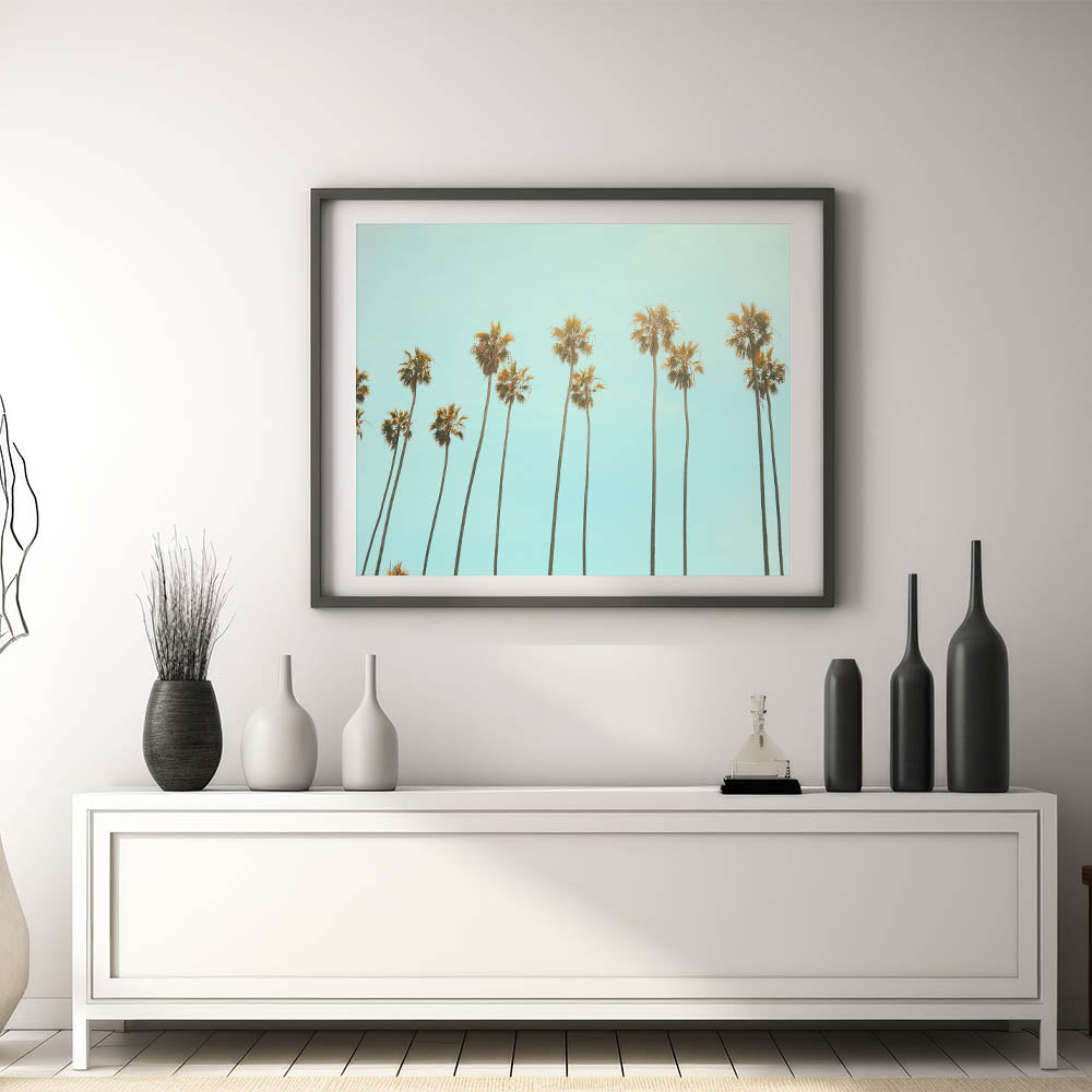 Add a touch of summer paradise to your walls with this stunning palm tree wall art. Featuring a row of tall, graceful palms against a soft turquoise summer sky, this artwork embodies tropical vibes and bright summer colors. Perfect for creating a relaxing and vacation-inspired atmosphere, this piece brings a timeless elegance to your seasonal home decor.