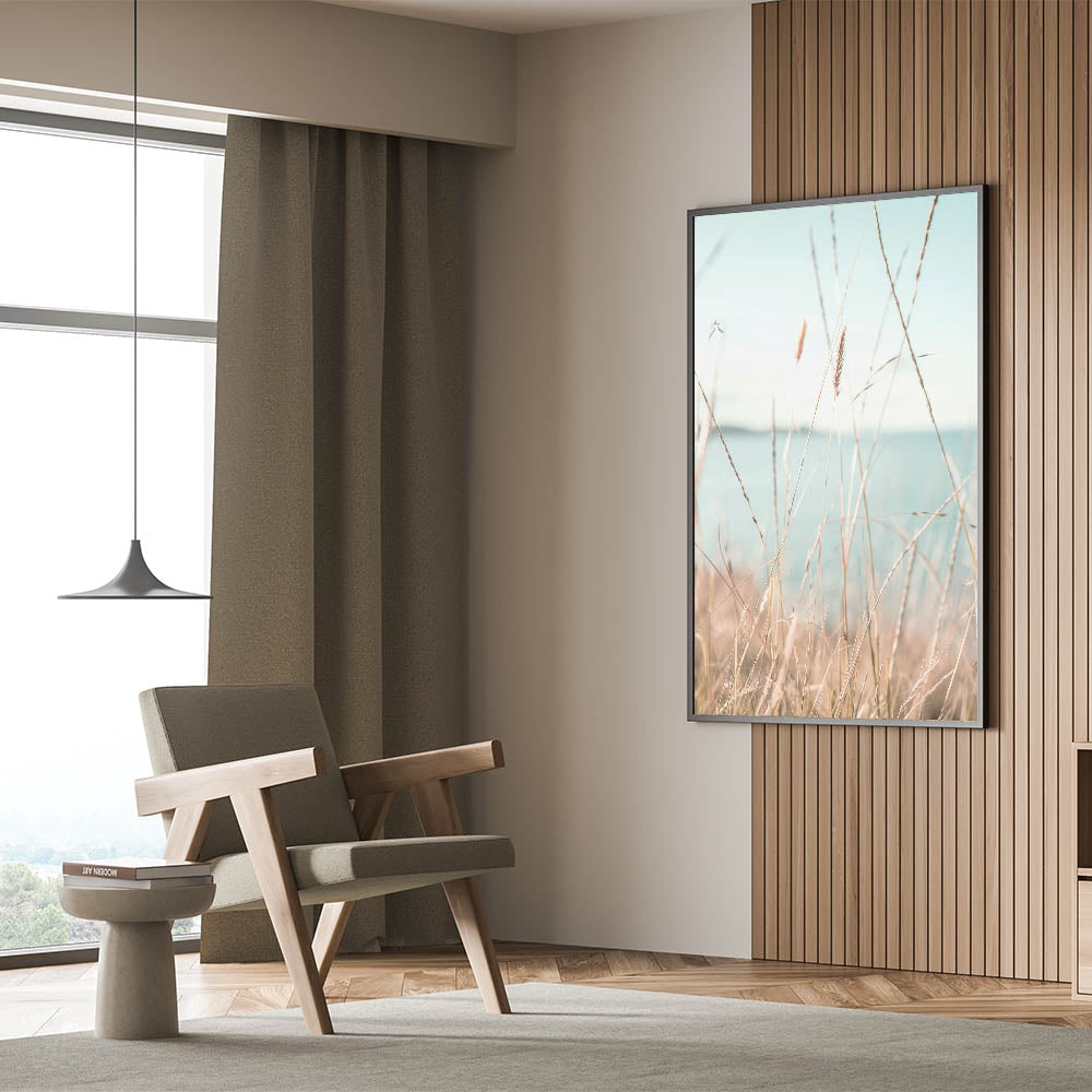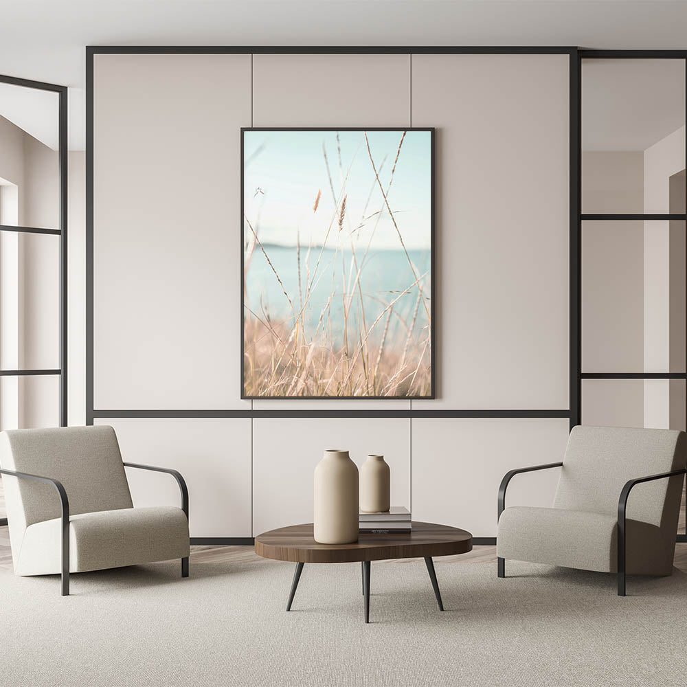 Infuse your home with the beauty of coastal summer days with the Golden Coastal Breeze wall art. This serene piece highlights tall golden beach grasses swaying softly against a calm ocean backdrop, embodying the essence of nature-inspired summer art. Perfect for creating a relaxing, vacation-inspired atmosphere, it brings warmth and natural elegance to any space.