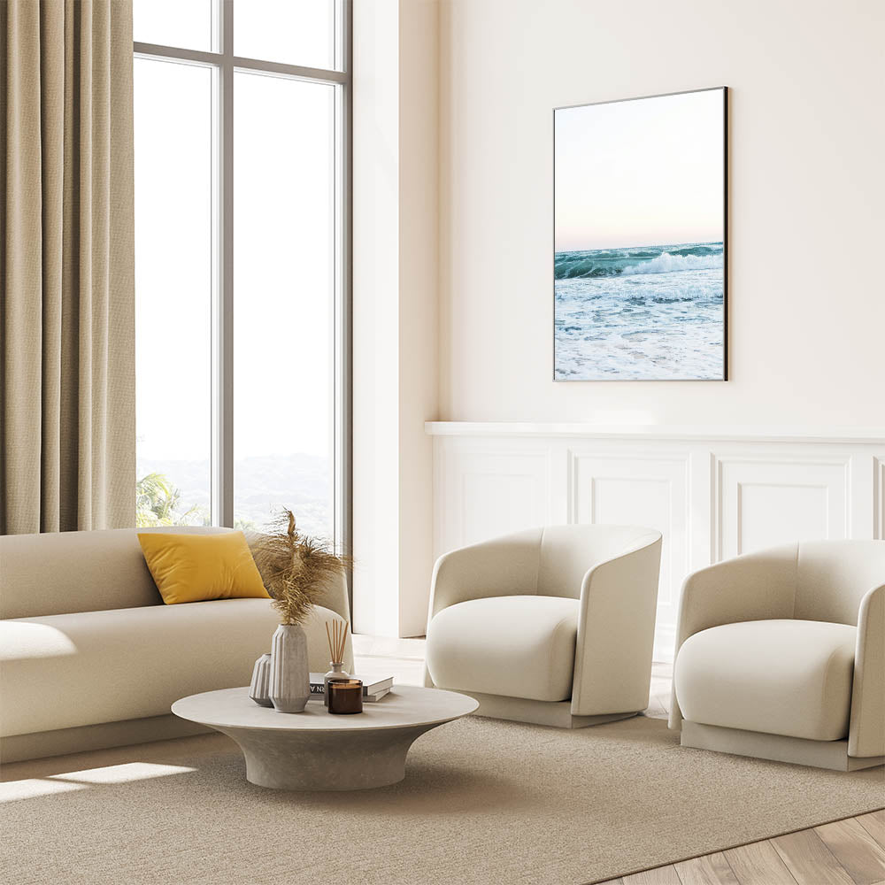Whether you want to create a summer wall décor theme in your living room or bring a touch of the ocean into your bedroom, this summer art print is the ideal choice. Let the rhythmic waves transport you to a place of relaxation and serenity.