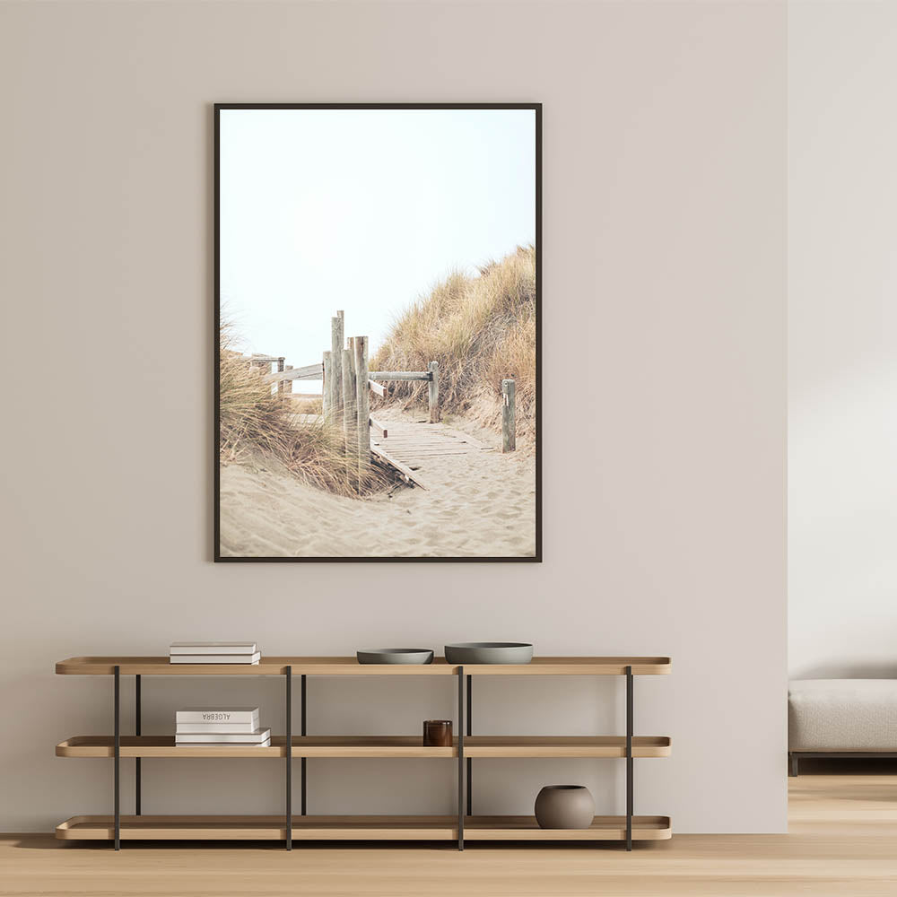 This beautiful print invites you to take a calming stroll through the dunes, where nature's quiet beauty meets summer’s warmth. Its natural, neutral tones blend seamlessly with modern, coastal, and minimalist decor, making it a versatile addition to any space. Create a personal escape that celebrates the beauty of summer with this stunning wall art.