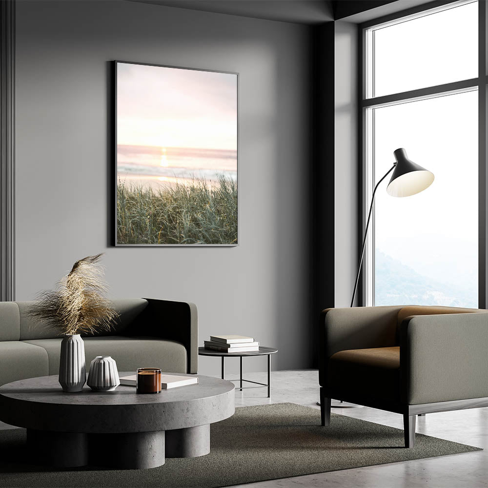 Capture the beauty of summer evenings with this stunning summer scenery canvas. Featuring lush coastal grasses illuminated by the golden glow of a setting sun, this artwork brings a sense of calm and natural elegance to your space. The soft tones of green, gold, and peach evoke the serene charm of relaxing summer landscapes.