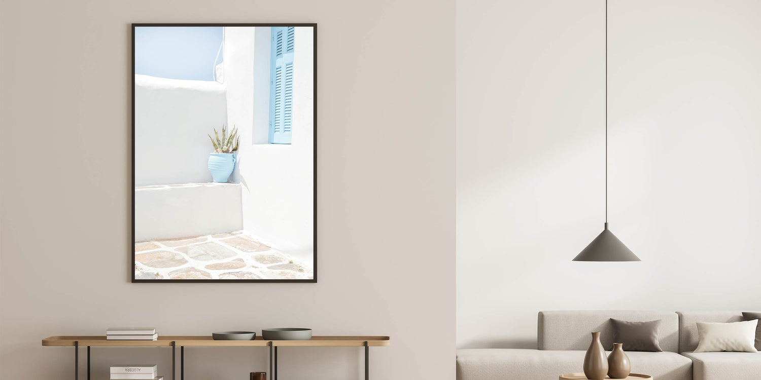 Summer Vibes Prints – Minimalist Blue Pot and Whitewashed Walls