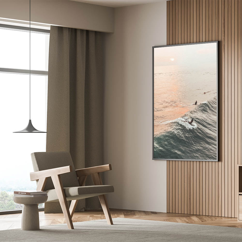 Sunset Canvas Art – Surfers Riding Waves at Golden Hour