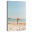 Tranquil Beach Canvas - Coastal Umbrella and Sea Wall Art