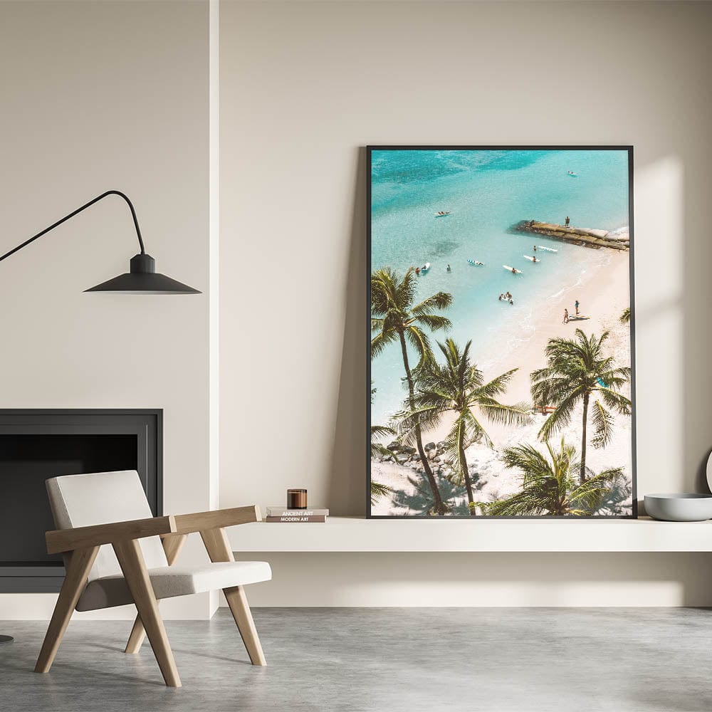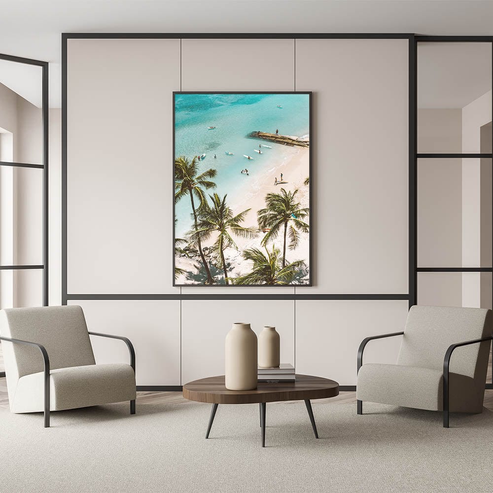 Transform your walls with this vibrant Tropical Wall Art showcasing a lively beach scene with swaying palm trees, turquoise waters, and sunlit sands. This Summer Landscape Art brings the essence of a tropical paradise into your space, making it an ideal addition to your vacation-inspired home decor. Perfect for living rooms, bedrooms, or offices seeking a refreshing summer vibe.