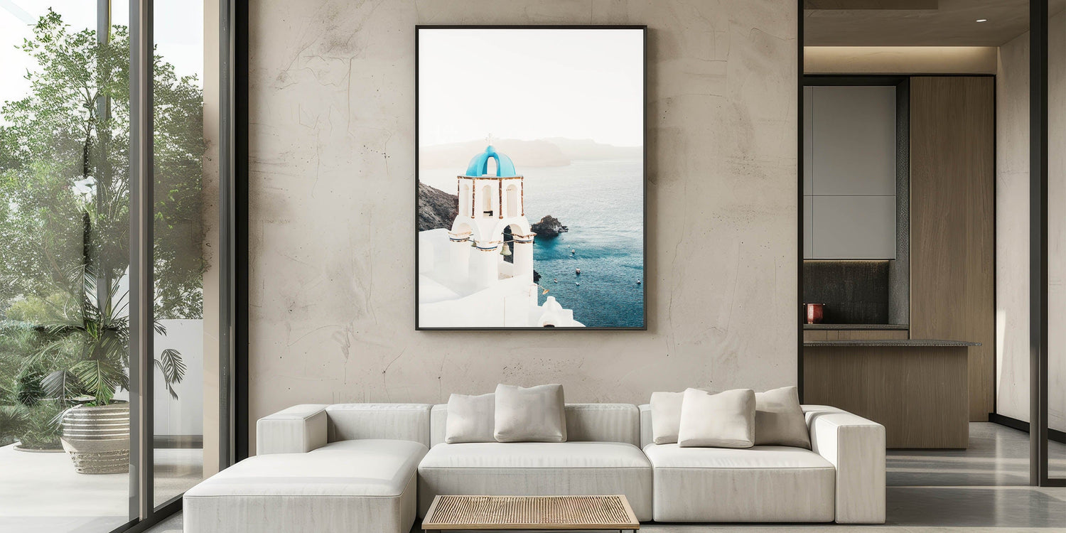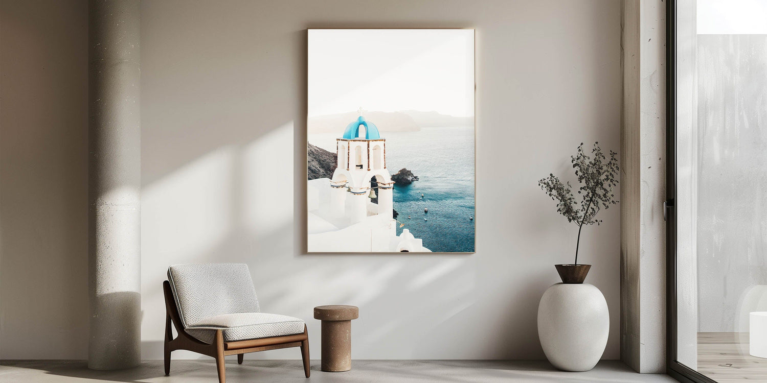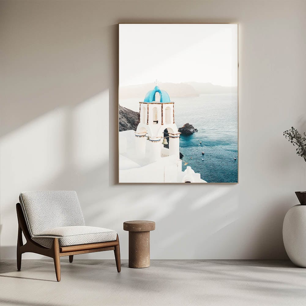 Tropical Wall Art – Greek Church and Ocean Landscape