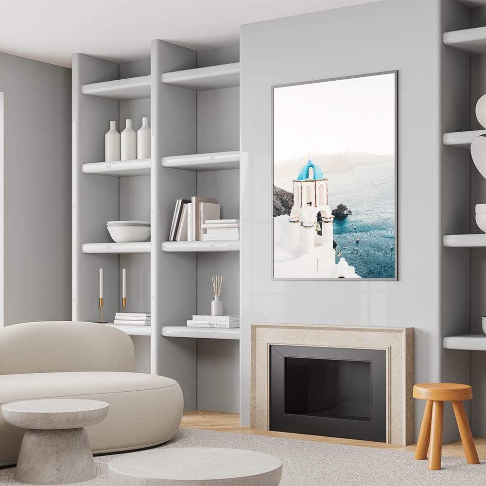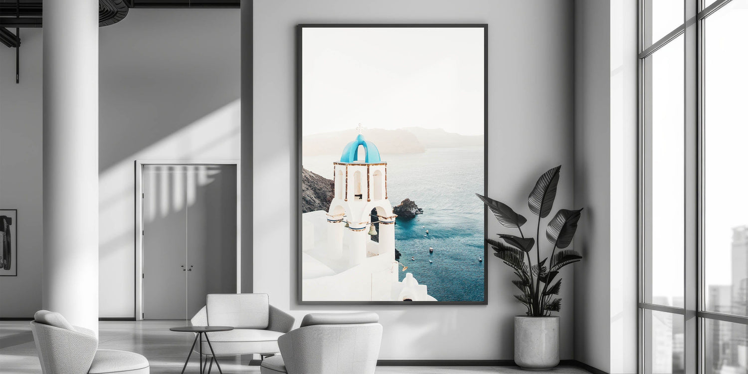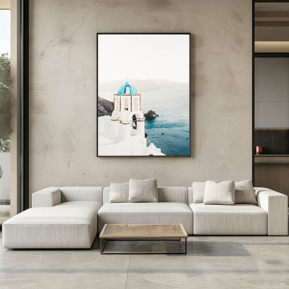 Tropical Wall Art – Greek Church and Ocean Landscape