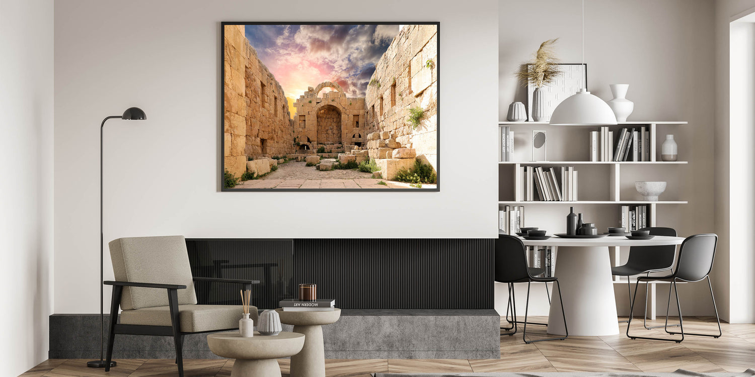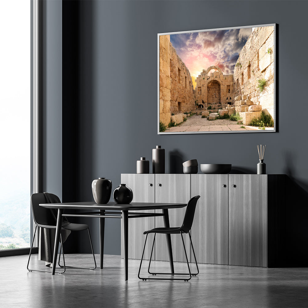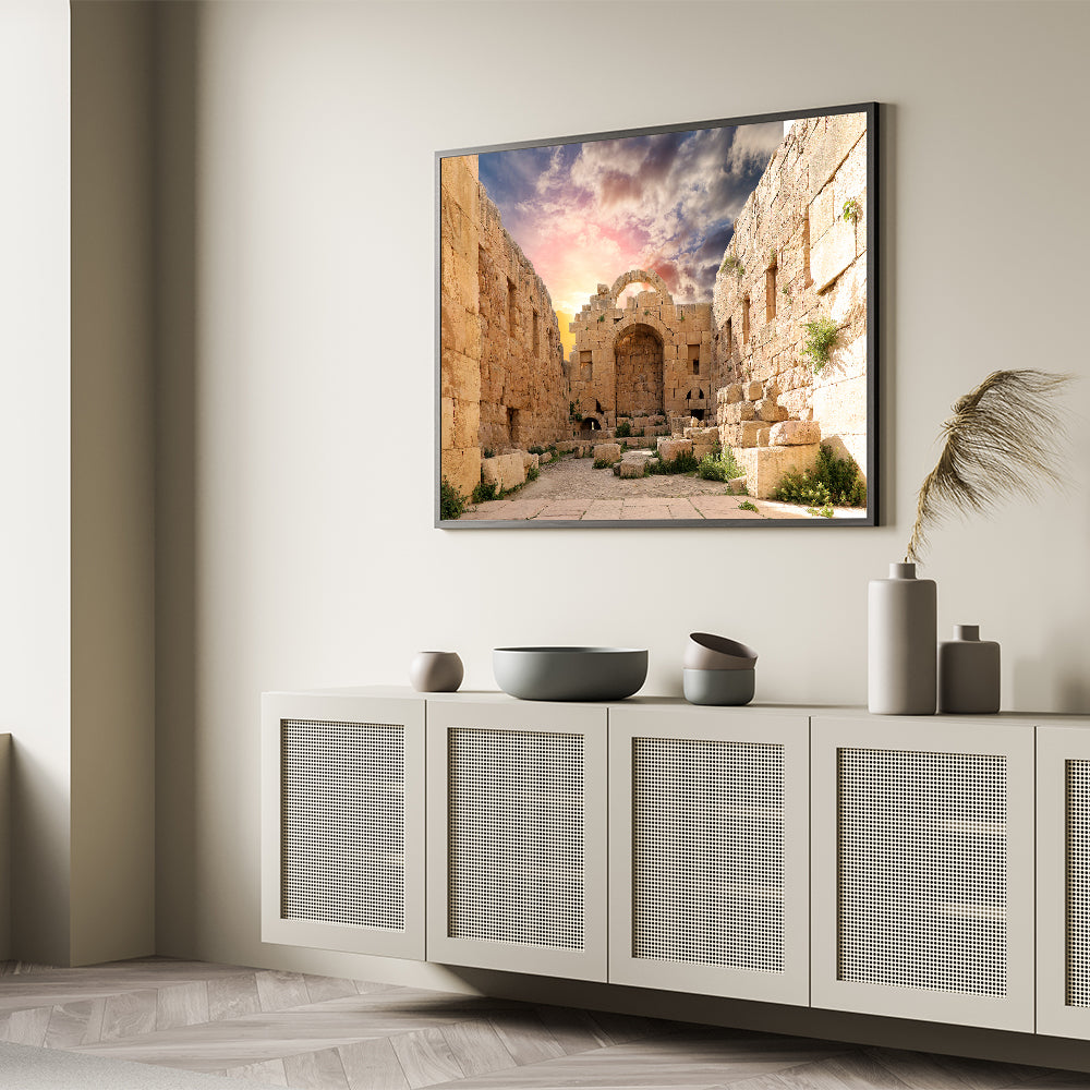 - High-quality prints that emphasize the textures of the stone walls and the vibrant colors of the sunset sky.