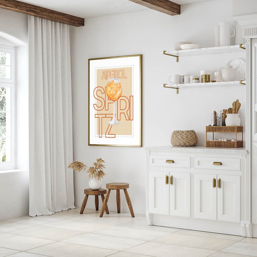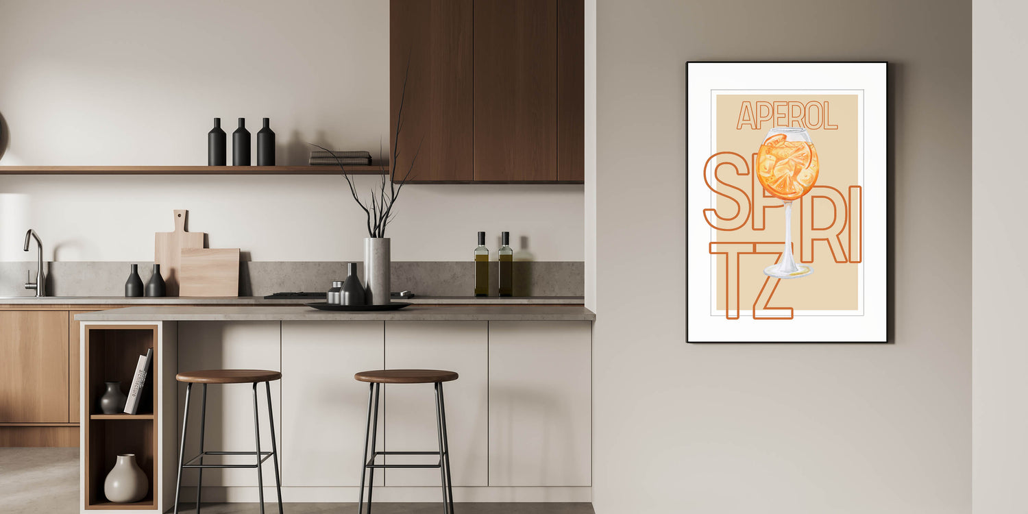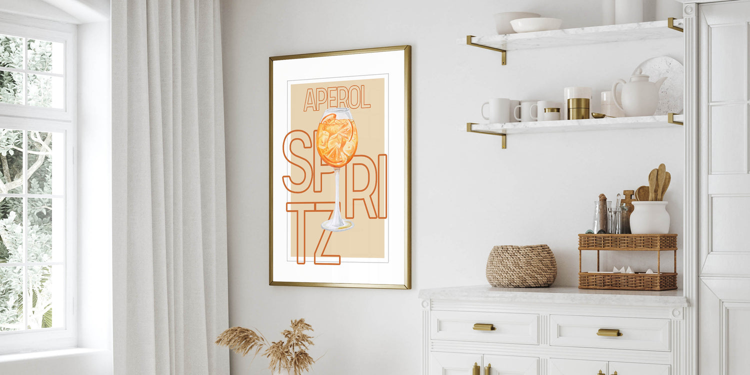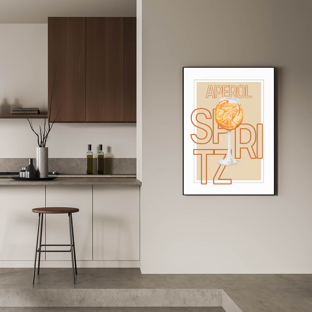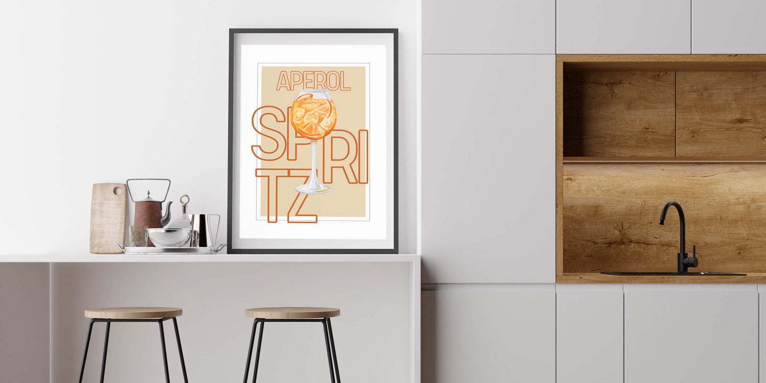 Aperol Spritz Cocktail Art - Beverage Wall Art for Bar Decor