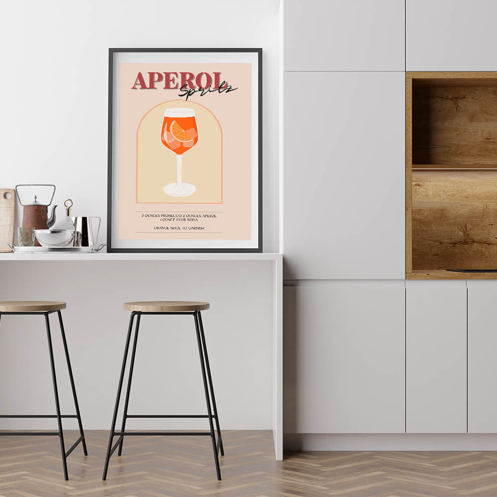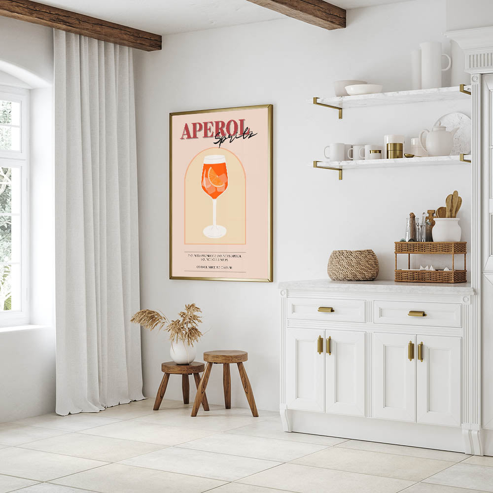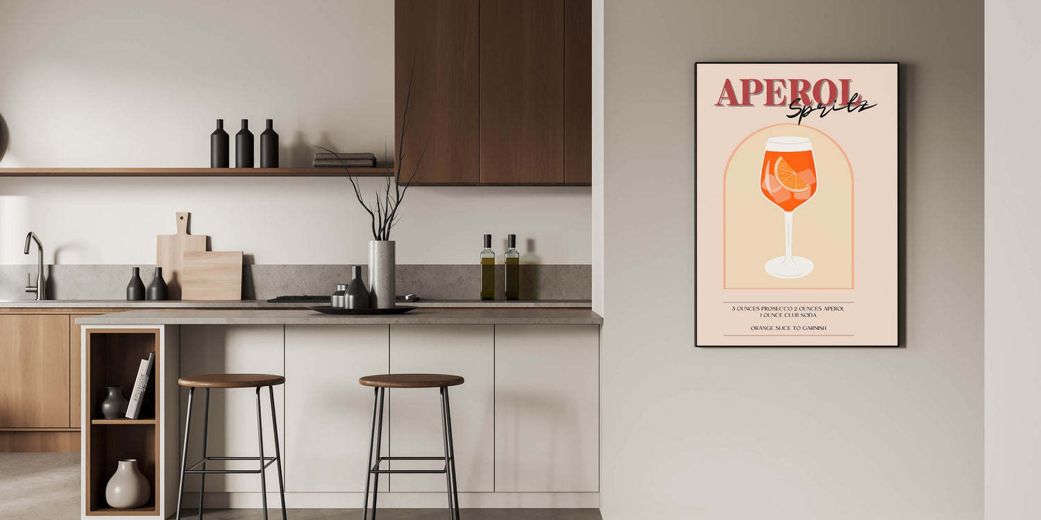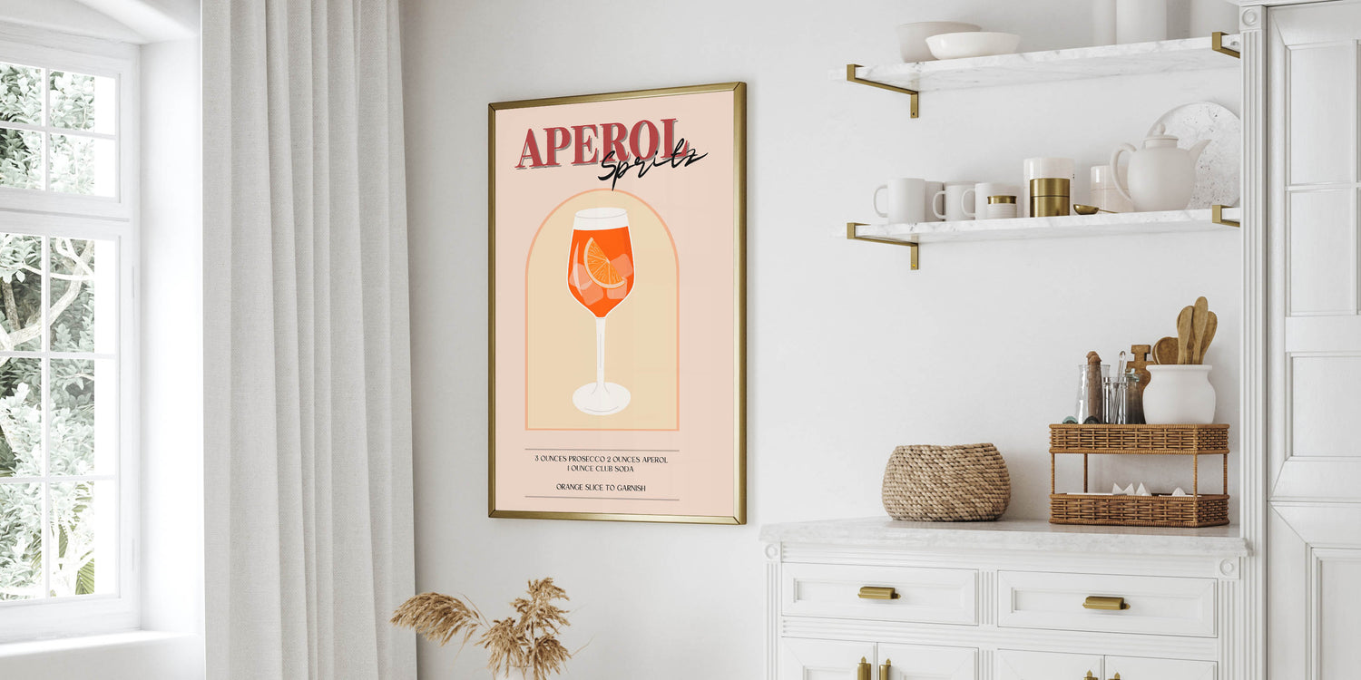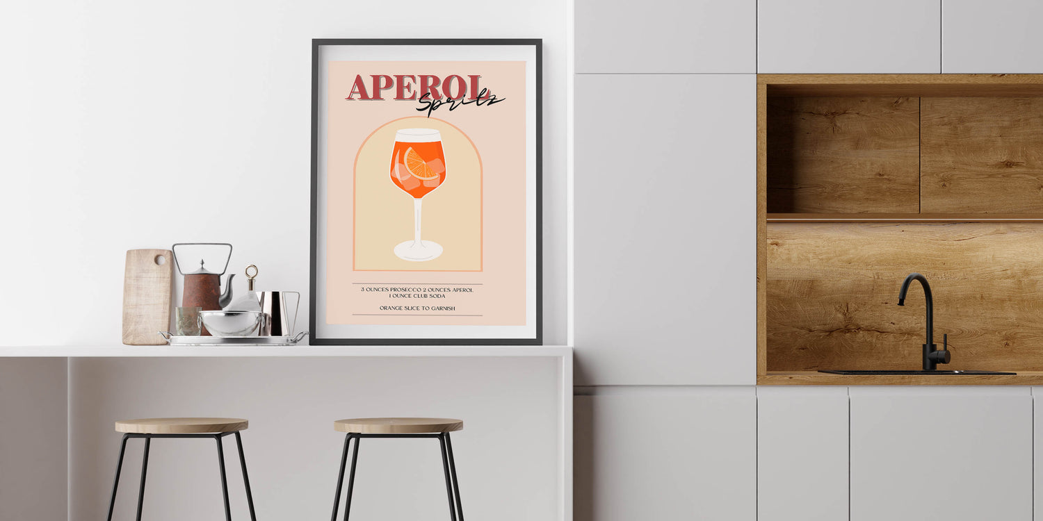 Aperol Spritz Cocktail Art - Beverage Wall Art for Bar Decor