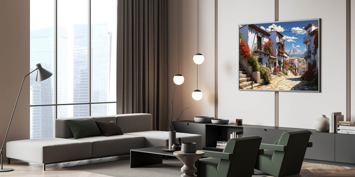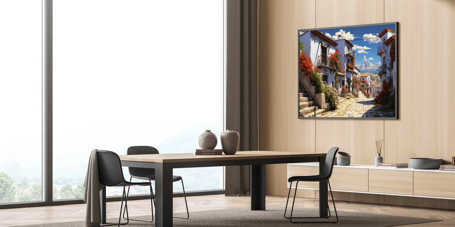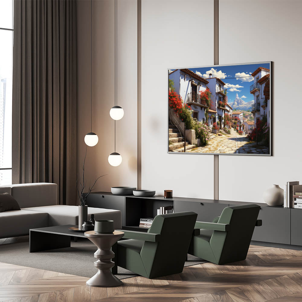 This charming streetscape canvas artwork is an excellent choice for bringing the beauty of Mediterranean villages into your home. It’s perfect for creating a welcoming and serene atmosphere in any space.