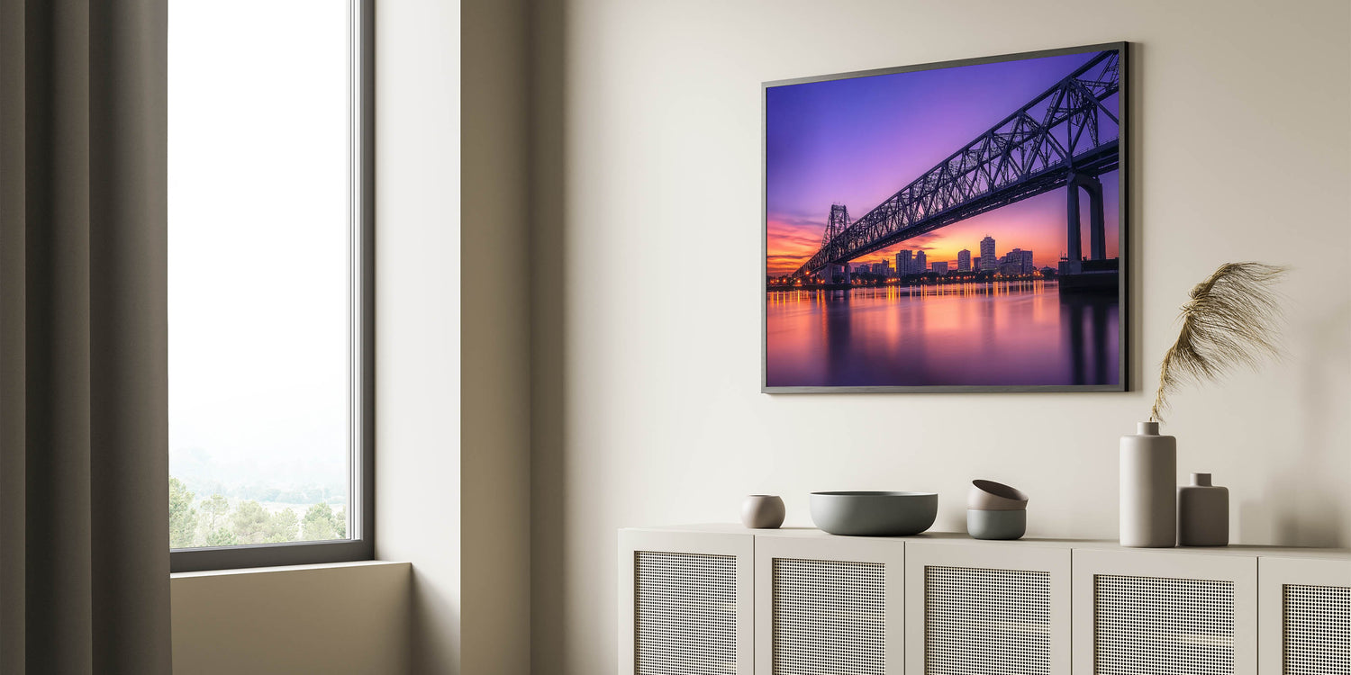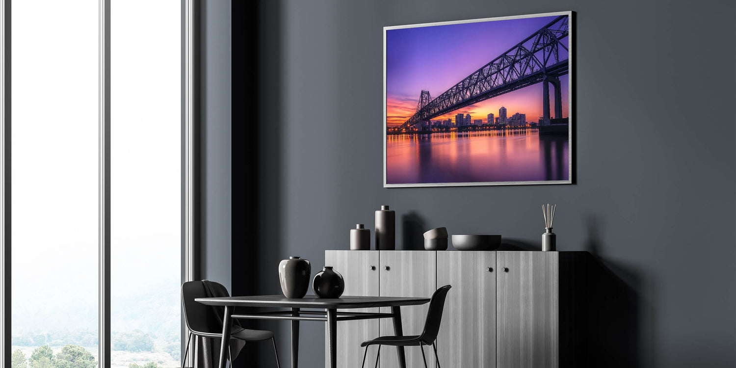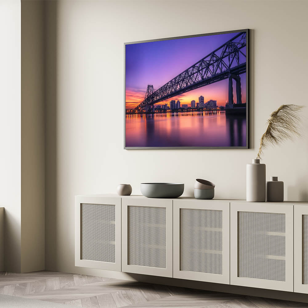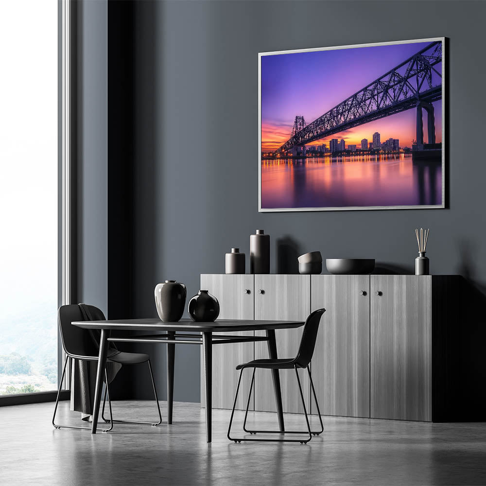 • High-quality bridge photography prints available in Stretched Canvas, Framed Canvas, Acrylic Glass, and Framed Acrylic Glass options.